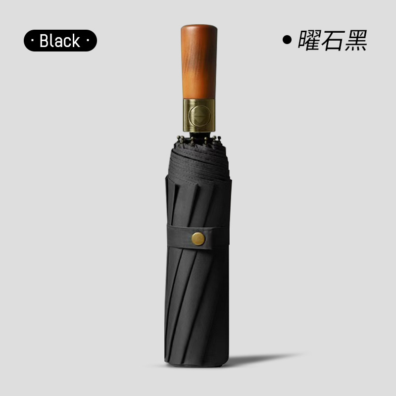 [Автоматический] 60-скелетный легкий роскошный зонт с деревянной ручкой (прочный штормостойкий кожаный чехол) — черный обсидиан