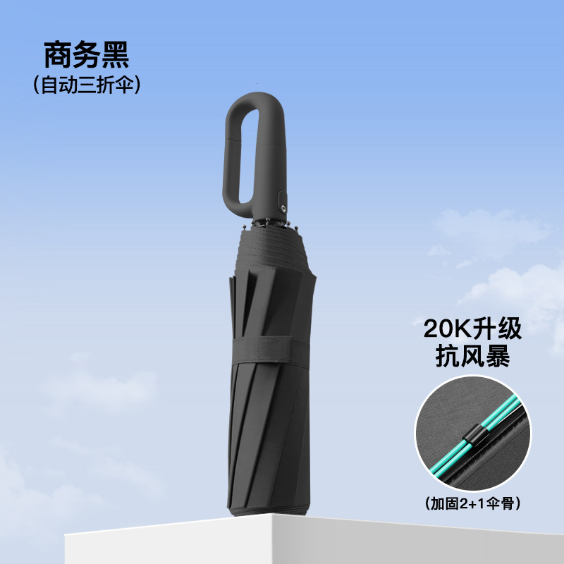 [Автоматический] 20 ребер (вращающаяся пряжка, зонтик от дождя и дождя) деловой черный