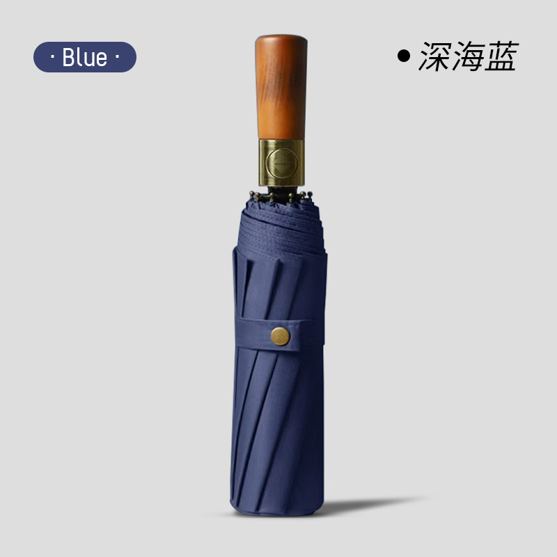[Автоматический] Светлый роскошный зонт с деревянной ручкой на 60 ребер (прочный штормостойкий кожаный чехол) - темно-синий