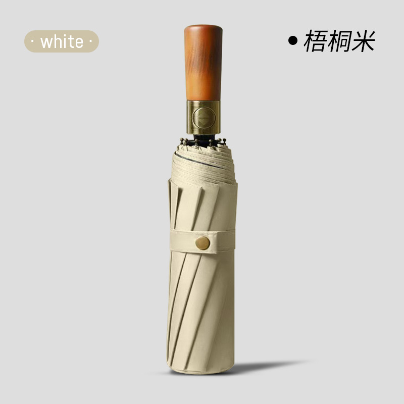 [Автоматический] 60-костный легкий роскошный зонт с деревянной ручкой (прочный штормостойкий кожаный чехол) - Wutong Rice