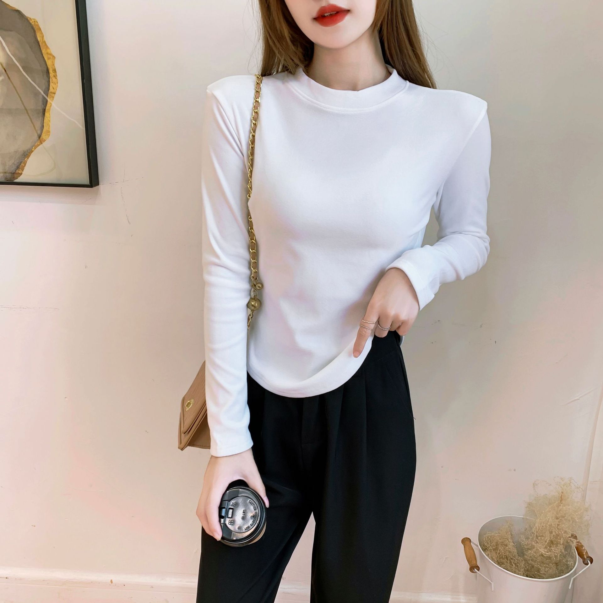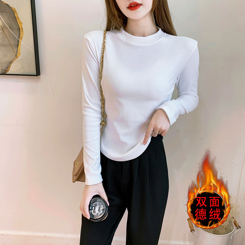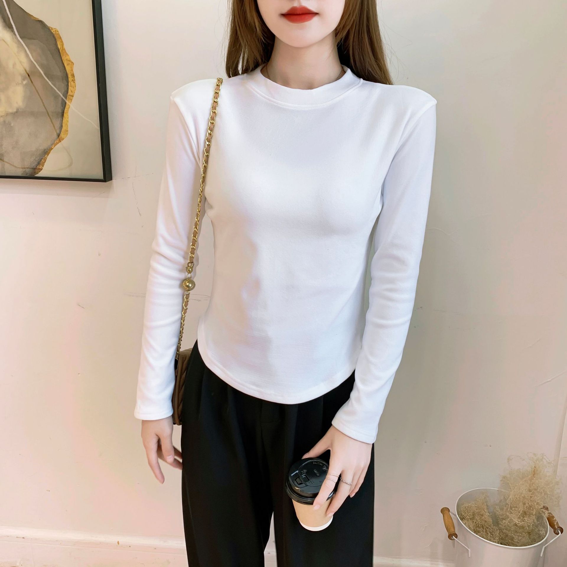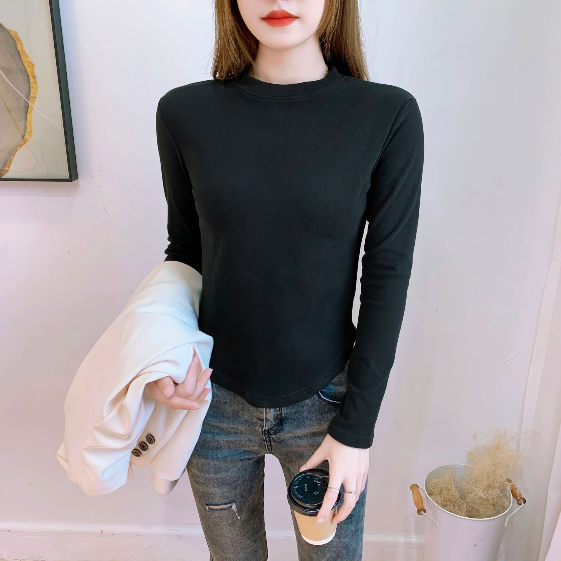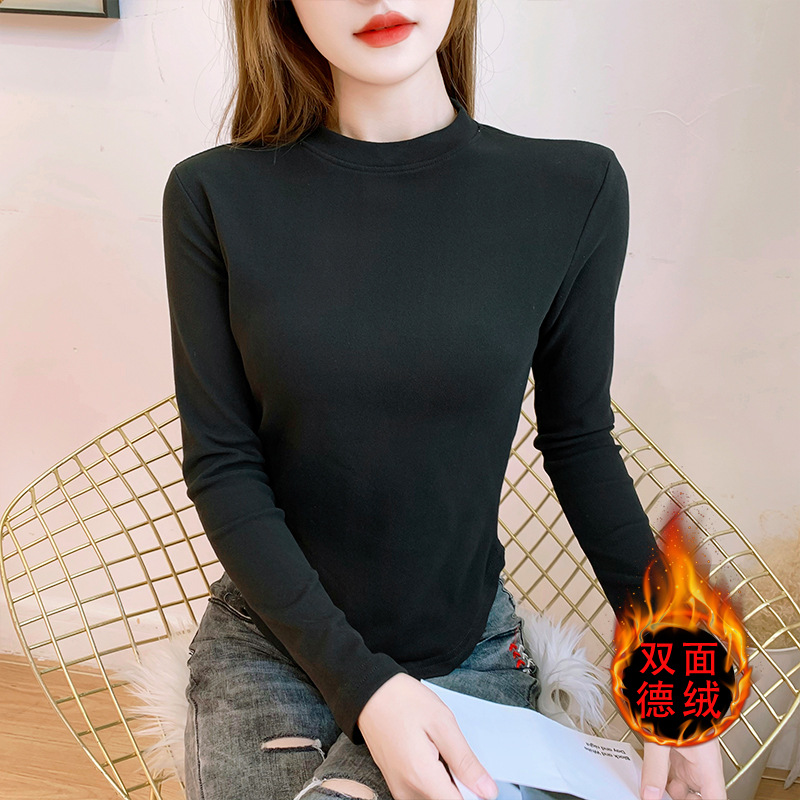 Главная страница > Двусторонняя бархатная нижняя рубашка, внутренняя одежда для матери, осенняя одежда, Женская футболка со средним воротником и длинными рукавами, весенне-осенний приталенный маленький топ с круглым вырезом