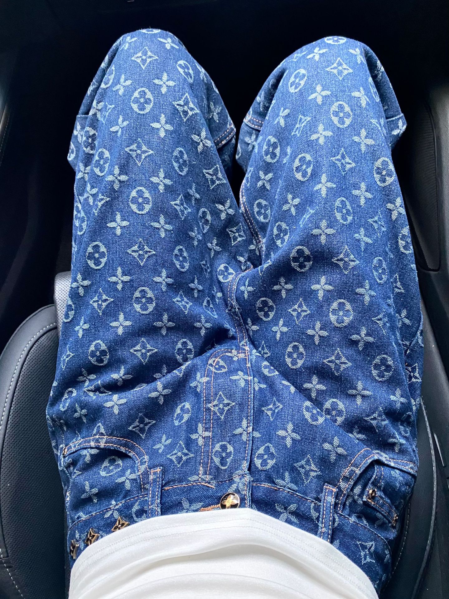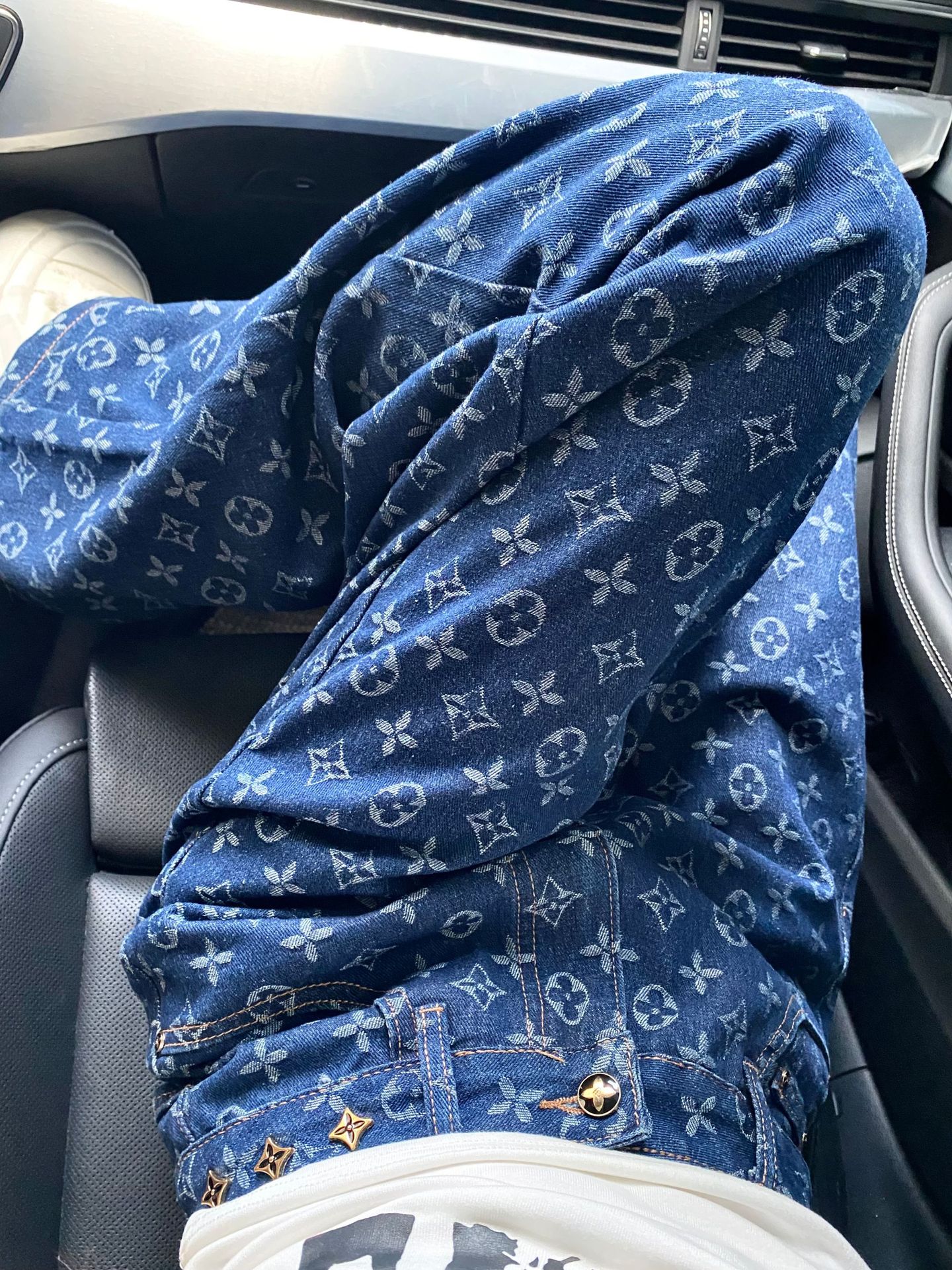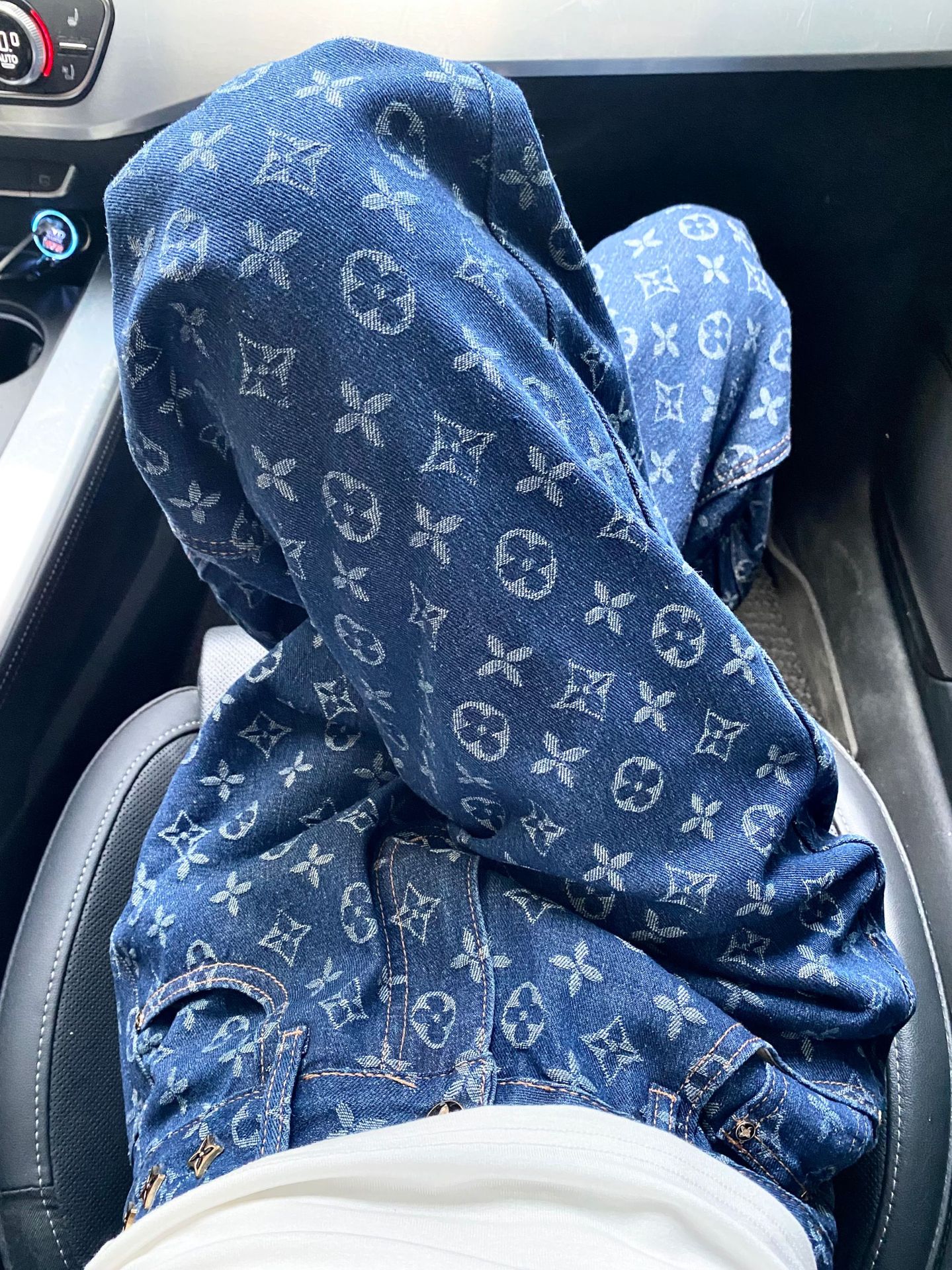 Главная страница > Модные жаккардовые джинсы с высокой талией и принтом для женщин, лето 2025, новые модные универсальные свободные широкие прямые брюки