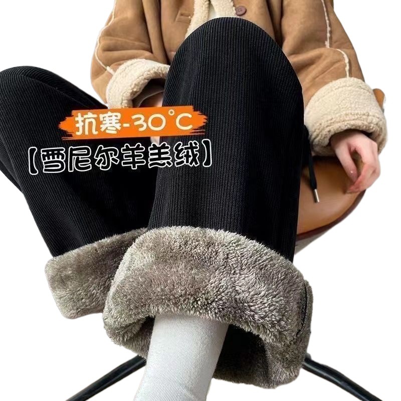 超厚女士加绒裤子牛仔阔腿秋冬季东北特厚ins休闲宽松显瘦直筒裤