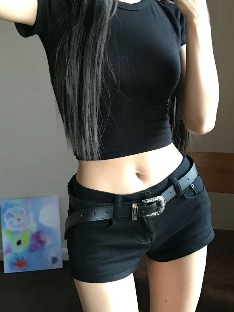 Черные джинсовые шорты с низкой талией женские летние бедра y2k легкие субкультурные шорты американские горячие штаны эластичные брюки