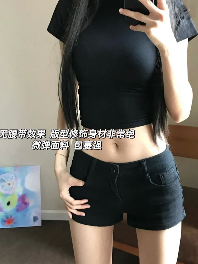 Главная страница > Черные джинсовые шорты с низкой талией женские летние бедра y2k легкие субкультурные шорты американские горячие штаны эластичные брюки