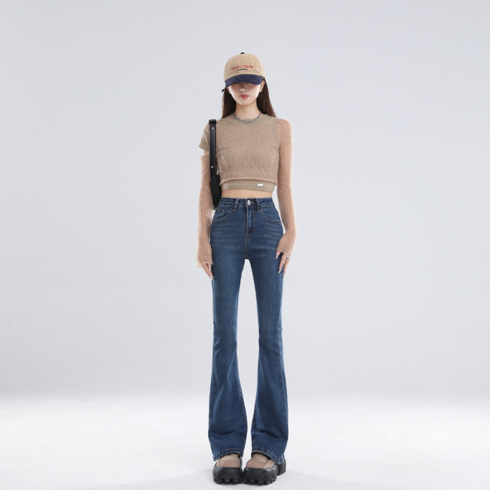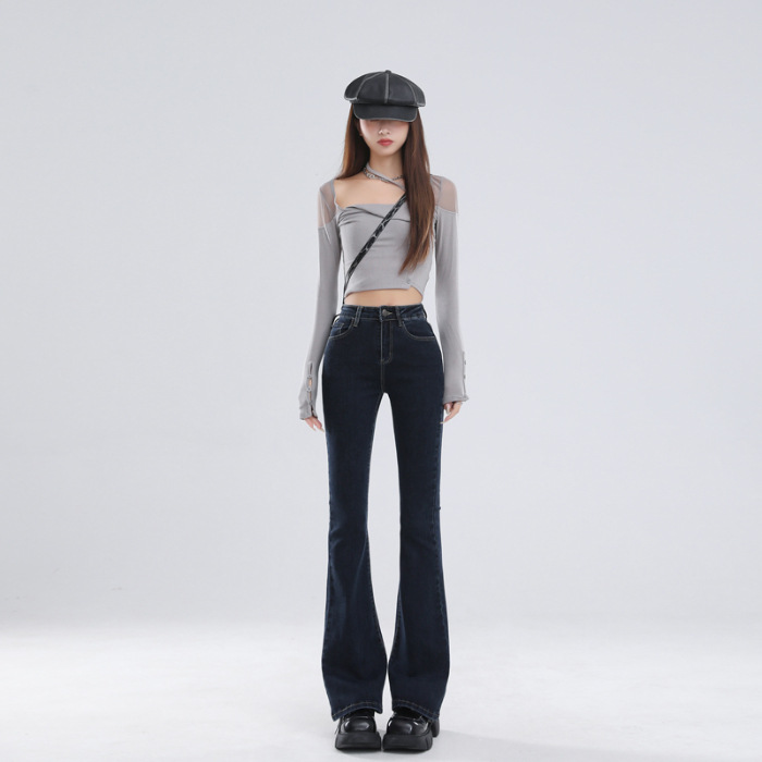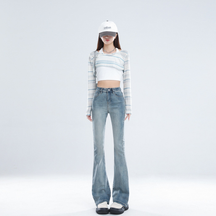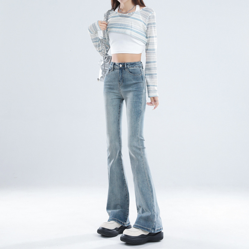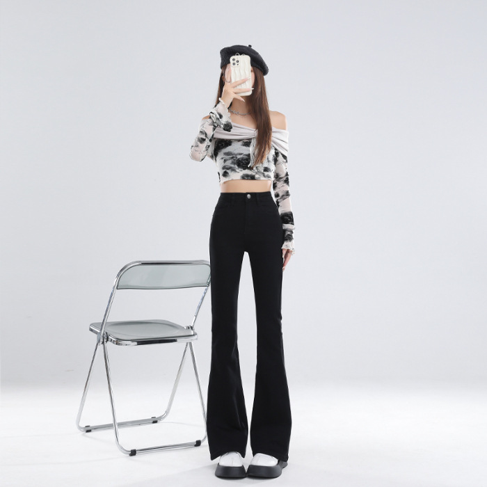 Главная страница > 2024 осень и зима в основном толкают микро-рог джинсы женский дизайн с высокой талией тонкая подкова брюки