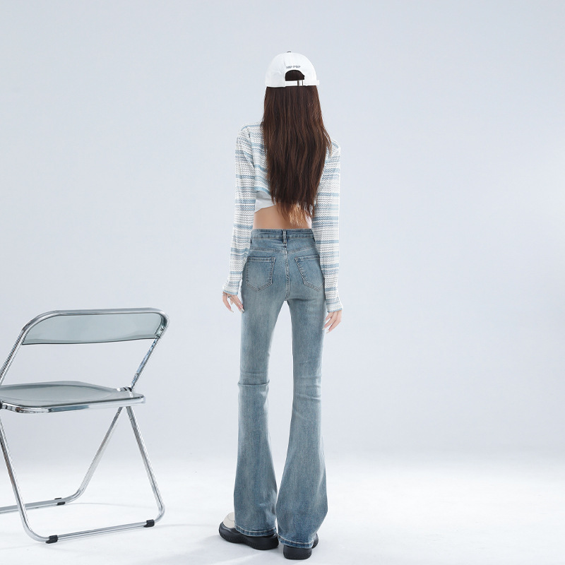 2024 осень и зима в основном толкают микро-рог джинсы женский дизайн с высокой талией тонкая подкова брюки