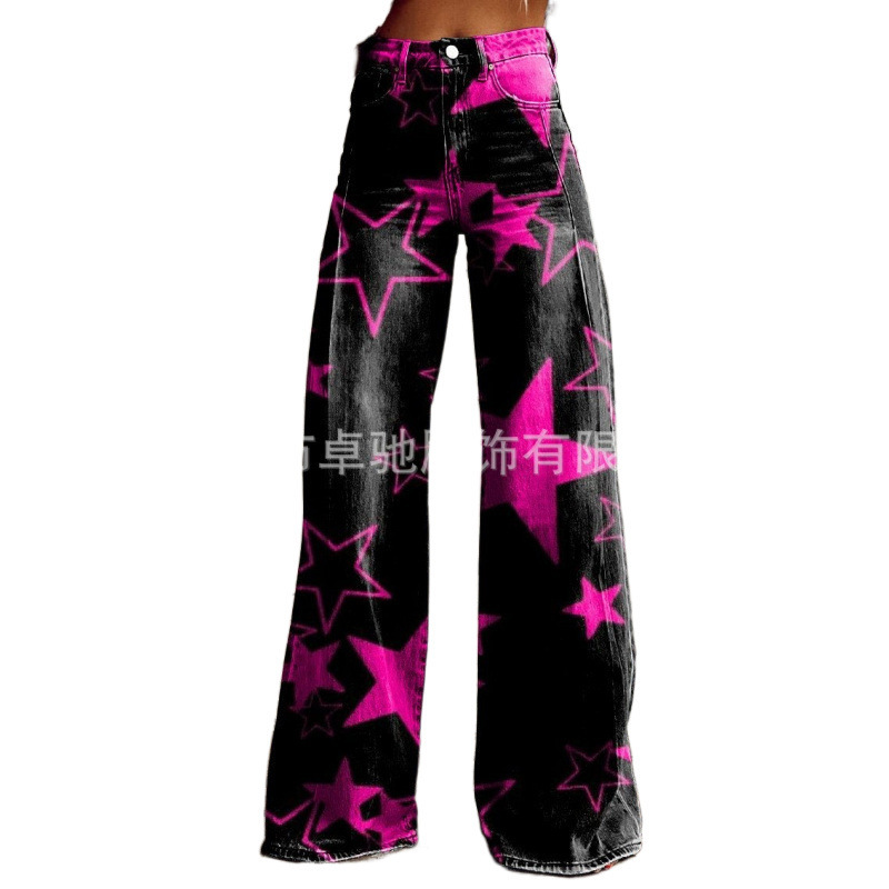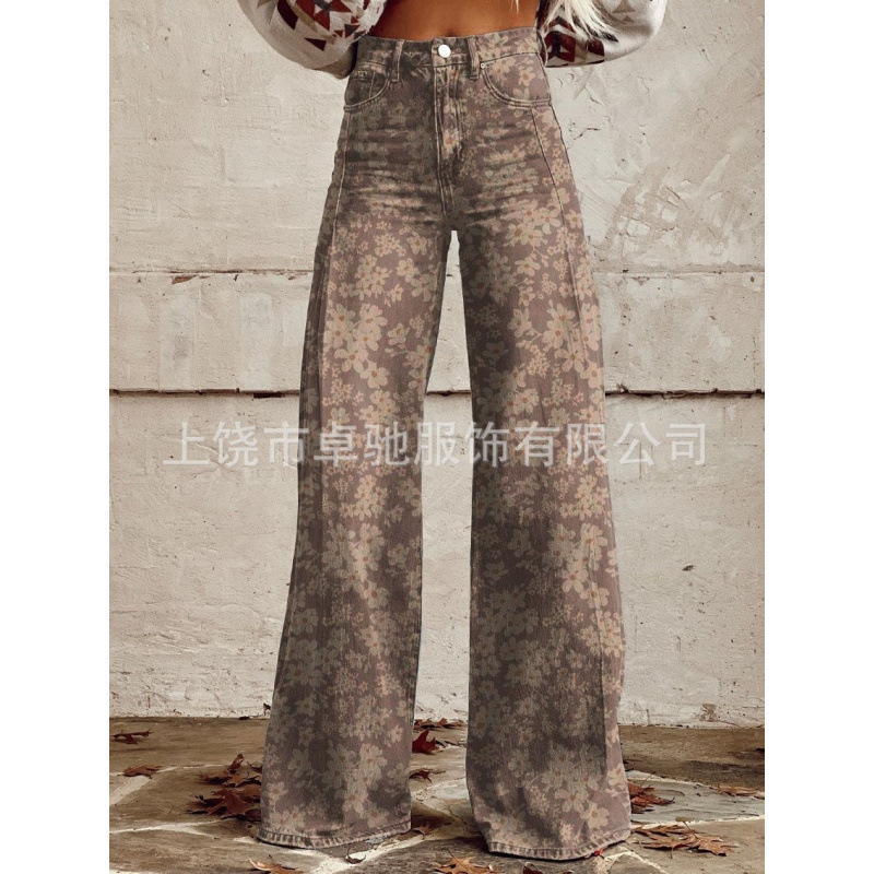Главная страница > 2025 Независимая станция Сийин Европейская и Американская внешняя торговля большие размеры женские повседневные брюки принты имитация джинсы широкие ножки 3D модные женские брюки