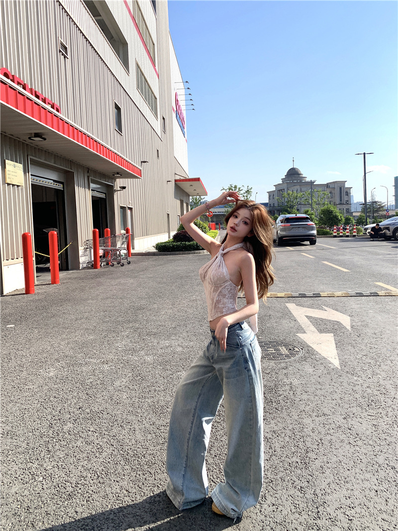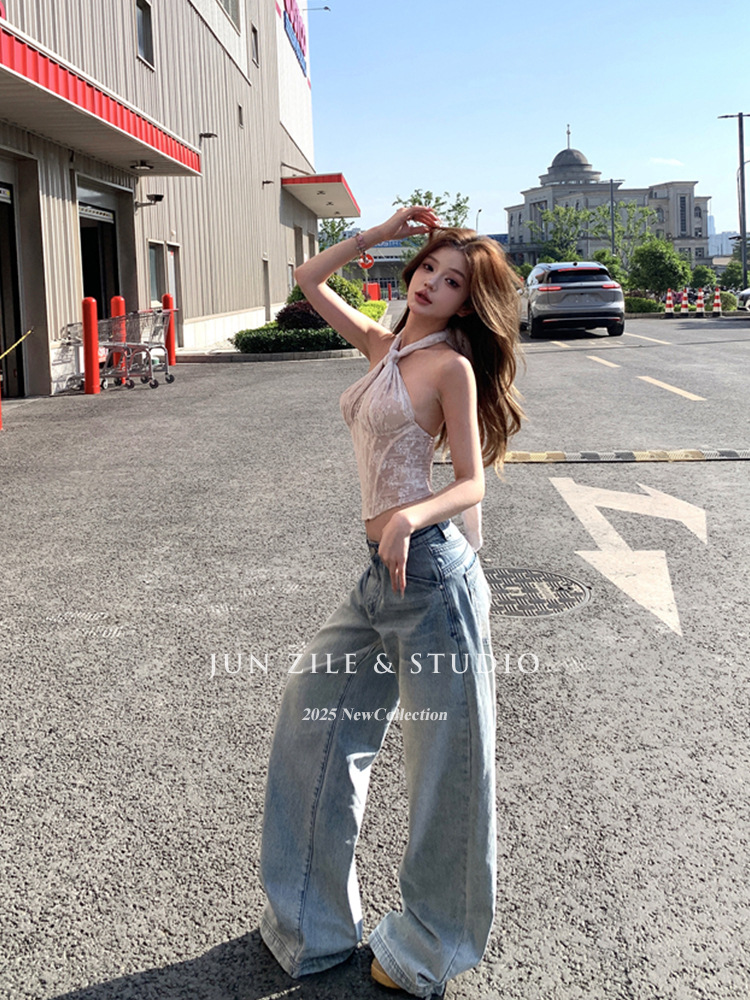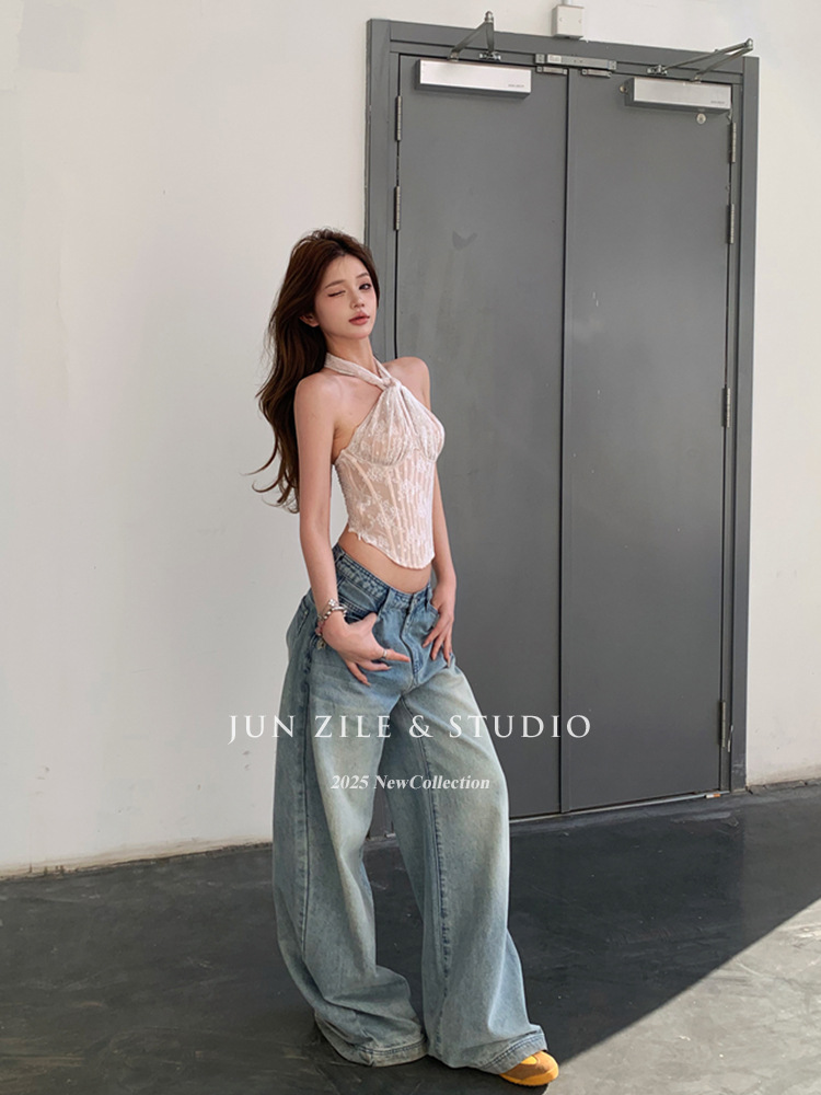 Главная страница > Широкие джинсы для женщин, лето 2025, новые уличные брюки для горячих девушек с низкой талией, свободные утягивающие прямые брюки длиной до пола, длинные брюки