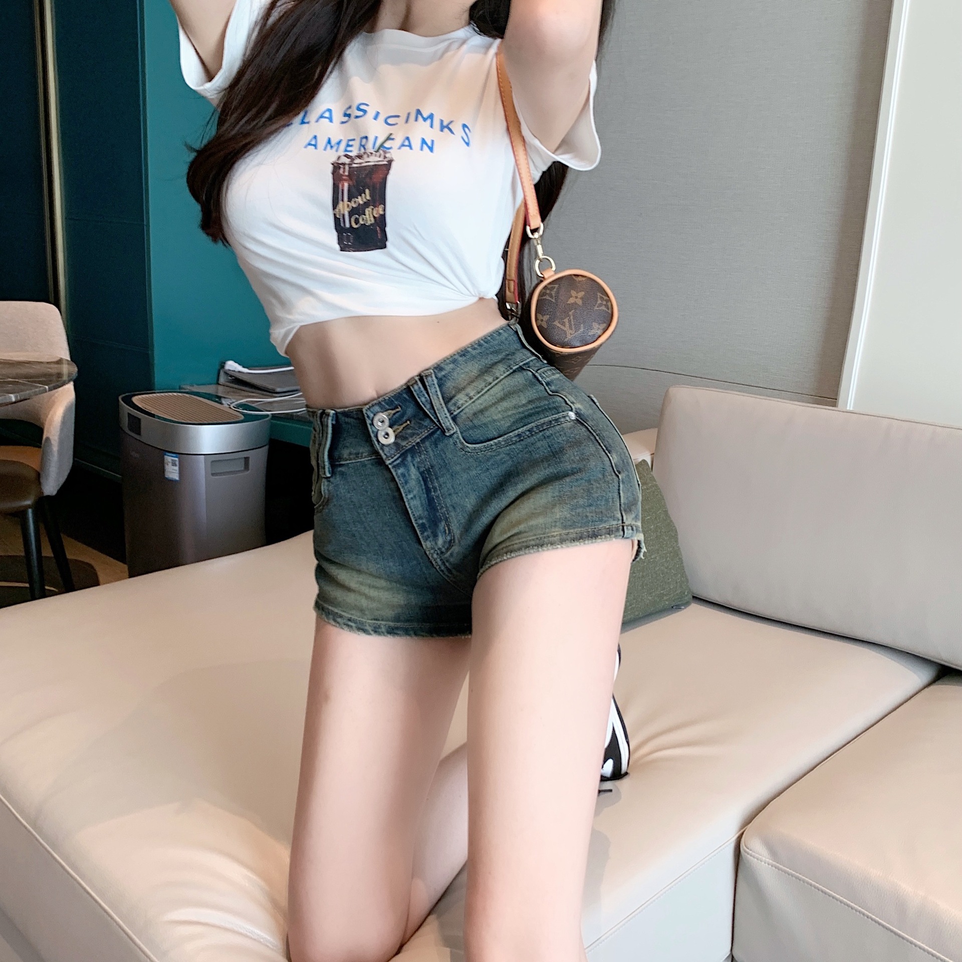 Главная страница > Высокая талия и длинные ноги ~ Джинсовые шорты в американском стиле ретро, женские летние прямые эластичные шорты А-силуэта с высокой талией