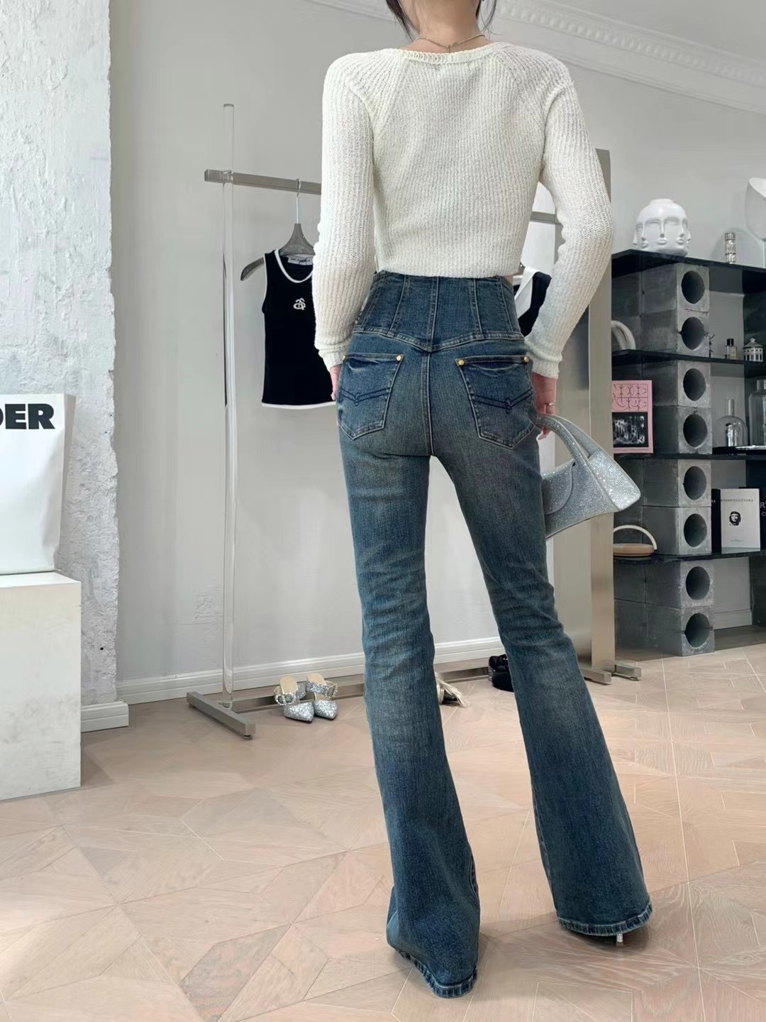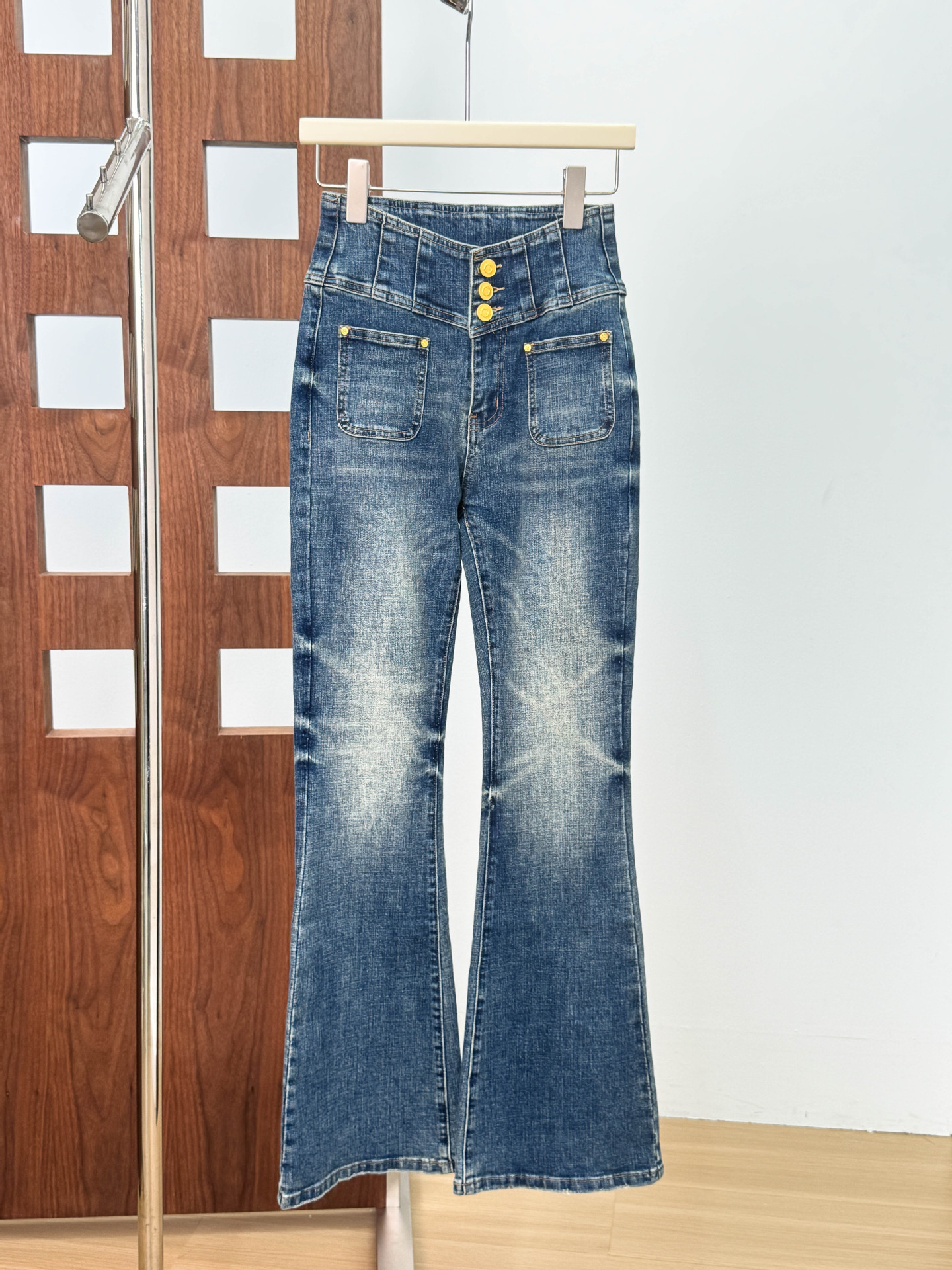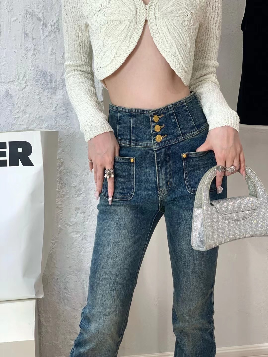 Главная страница > 24. европейские товары Nanyou, нишевый дизайн, тот же стиль, ретро, синие, потертые, на пуговицах, повседневные, слегка расклешенные, тонкие универсальные джинсы для женщин.