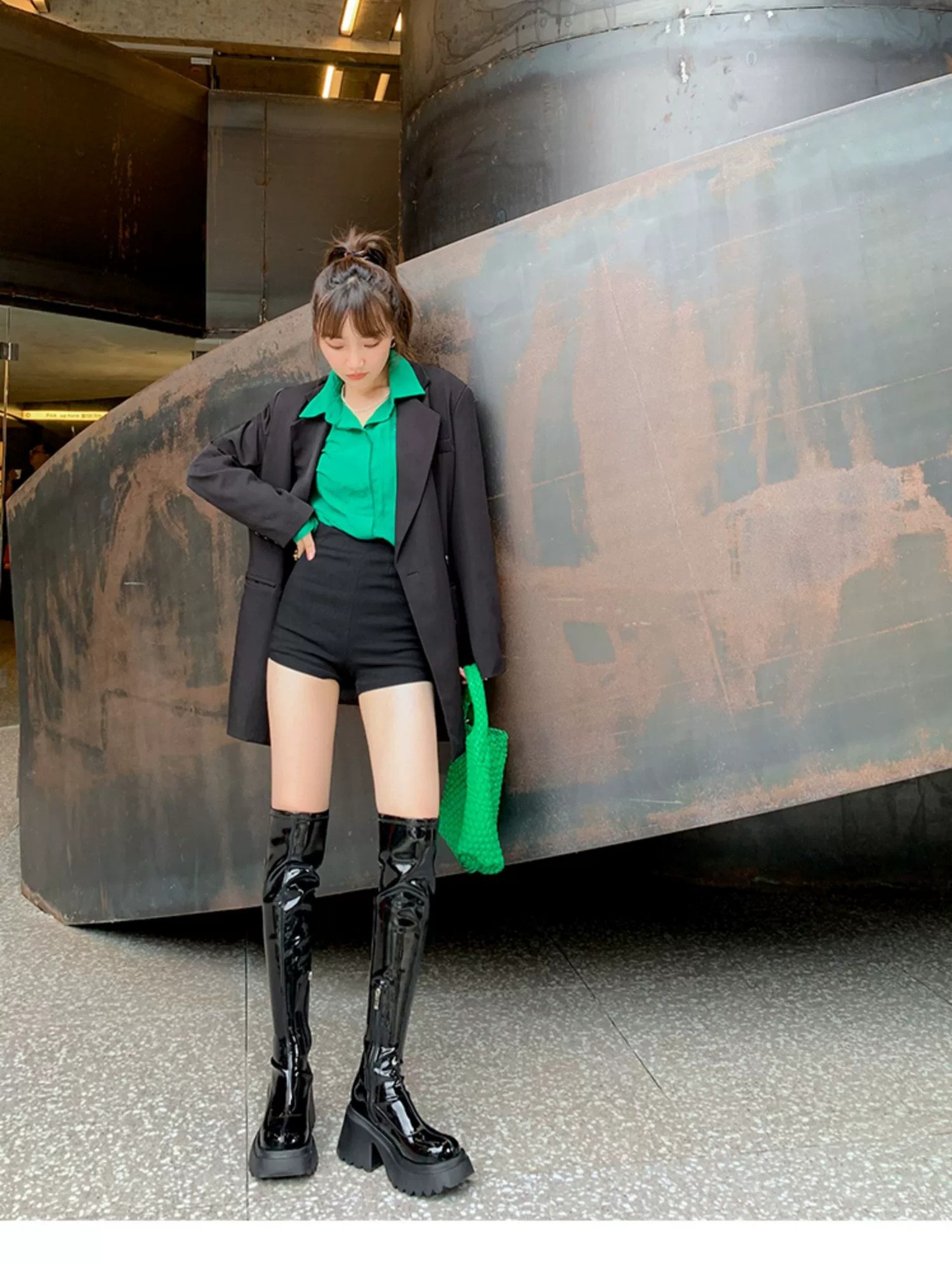 Главная страница > Женские сапоги выше колена, новая модель осень-зима 2025, облегающие эластичные сапоги, ботинки на толстой подошве в стиле Мартин, модный европейско-американский дизайн.