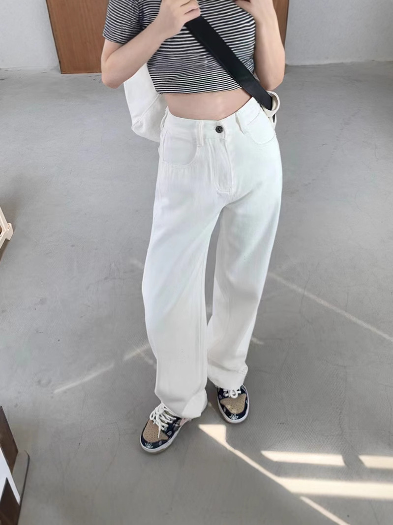 Главная страница > Весенне-осенний новый стиль, простые прямые джинсы для женщин, корейская версия, утягивающие, элегантные широкие джинсы в пол.