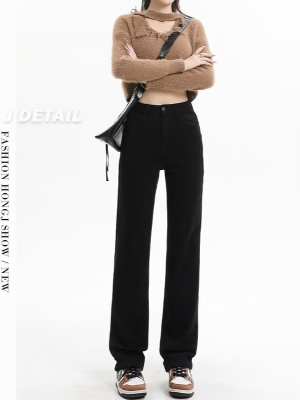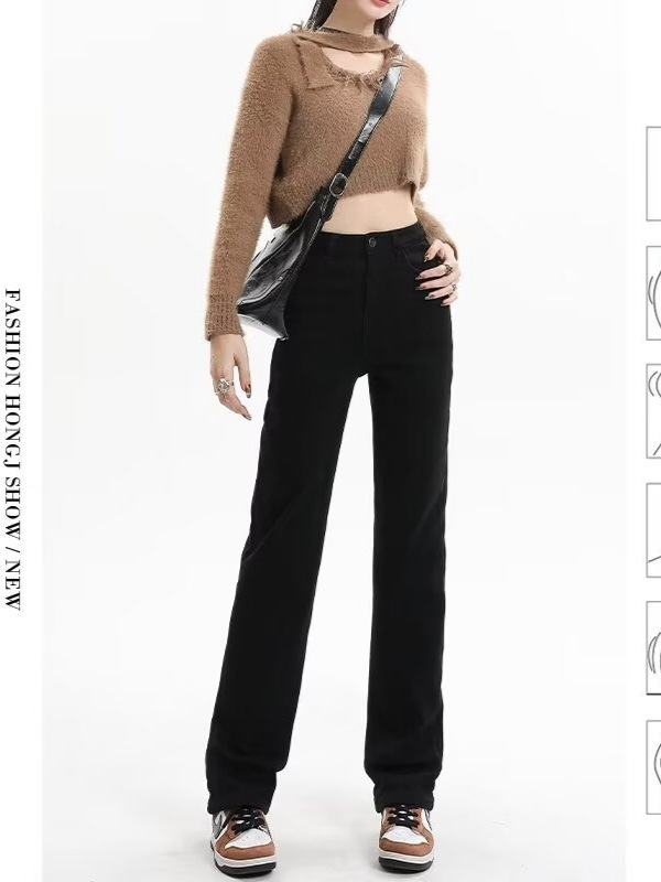 Главная страница > Женские черные бархатные джинсы с высокой талией