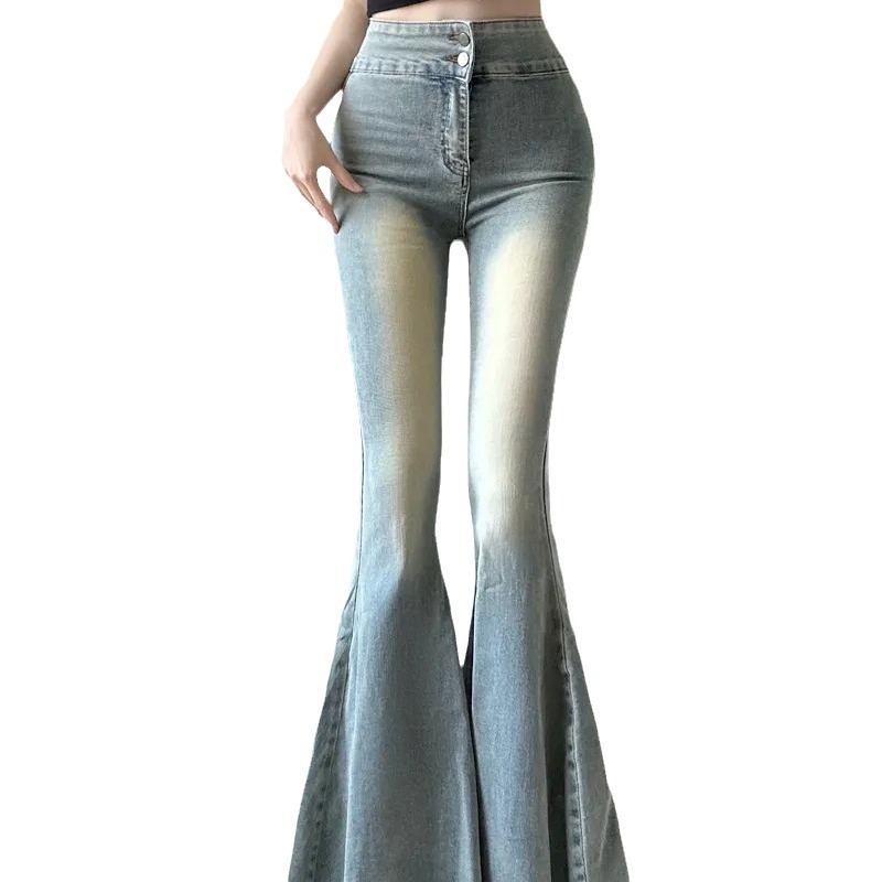 Главная страница > Рыбий хвост джинсы женский с высокой талией новый большой рог весной тонкий ретро эластичный стройный, широкие ноги и длинные брюки
