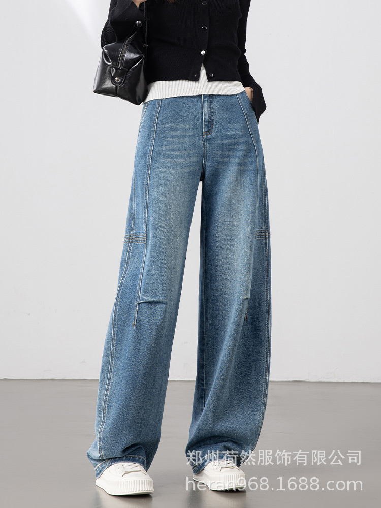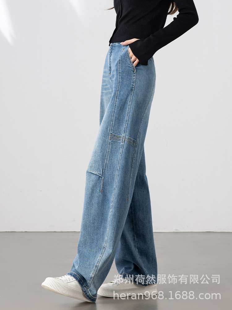 Главная страница > Джинсы женские Heran Autumn New: высокая талия, стрейч, хлопок, широкие штанины, свободный крой, повседневные, в стиле ретро