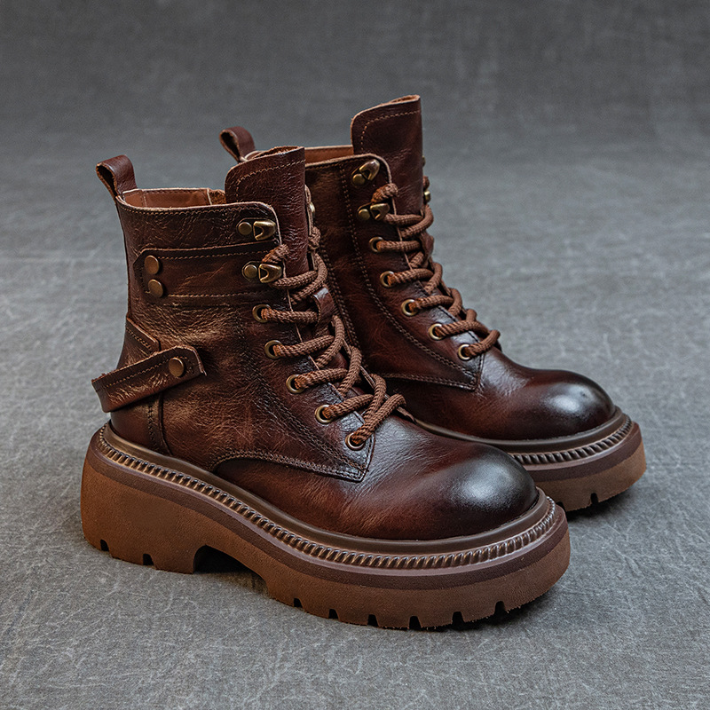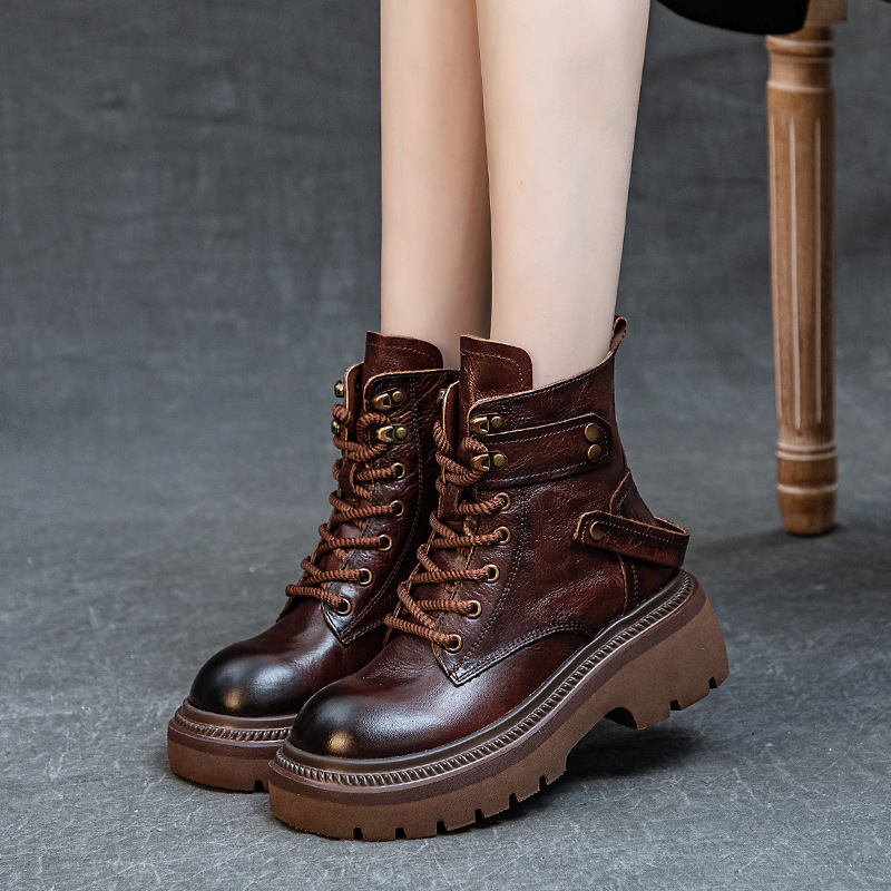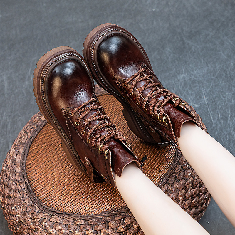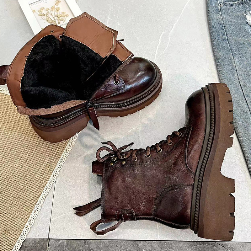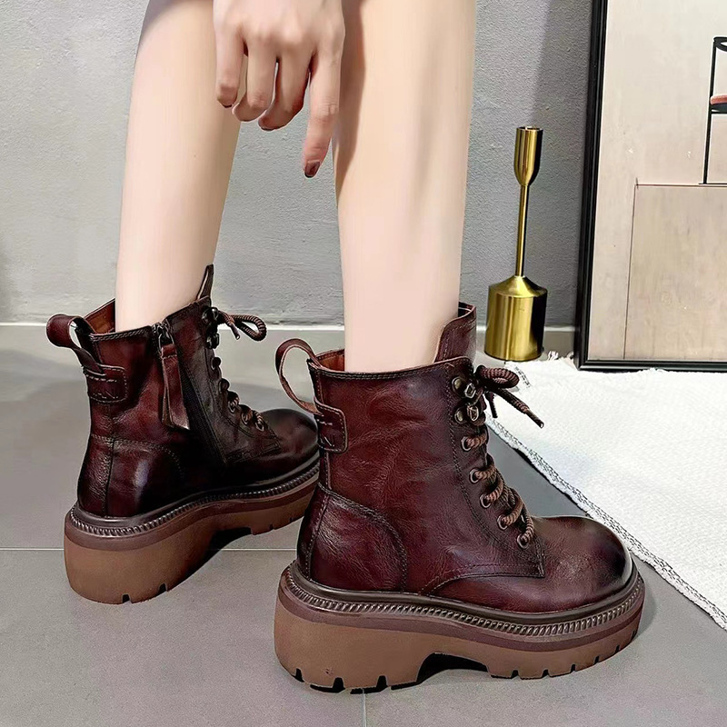 Главная страница > Женские ботинки Martin из натуральной кожи, осень 2023, новые Винтажные ботинки рыцаря на шнуровке из воловьей кожи, на толстой подошве, на толстом каблуке, с верхним слоем из пеноматериала