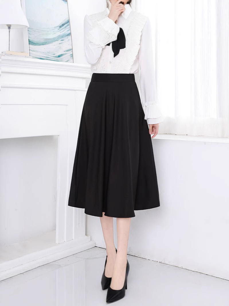 Главная страница > Весенне-летняя длинная черная эластичная утягивающая юбка А-силуэта с высокой талией, карманами и широким подолом для женщин.