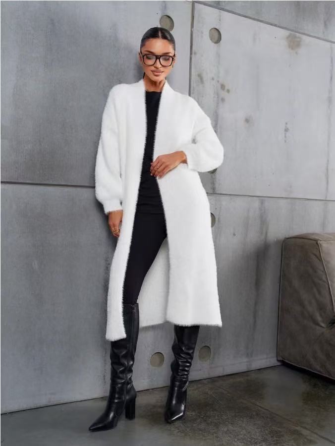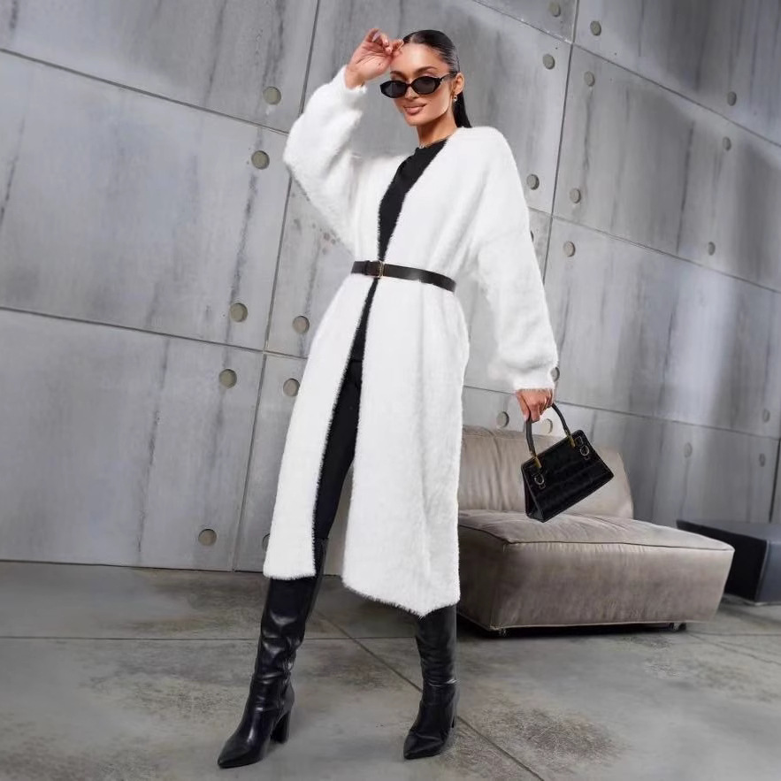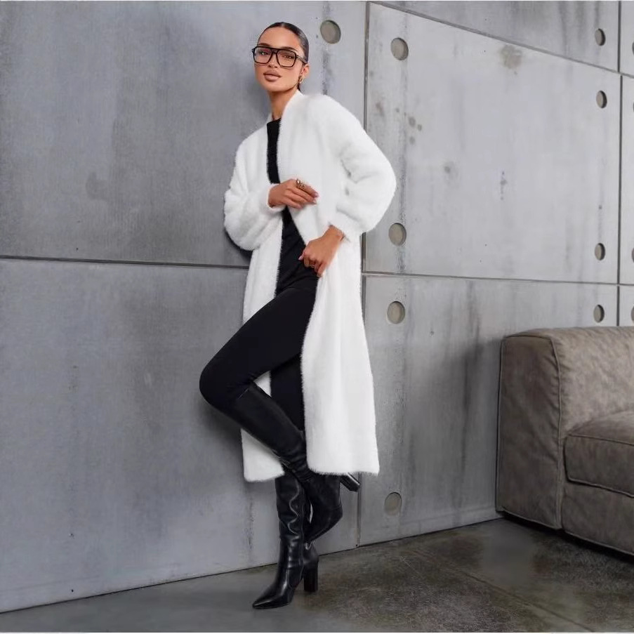 Женский кардиган из искусственного меха норки, белый, трикотажный, свободный, плюшевый, пушистый, длинный, для осени и зимы