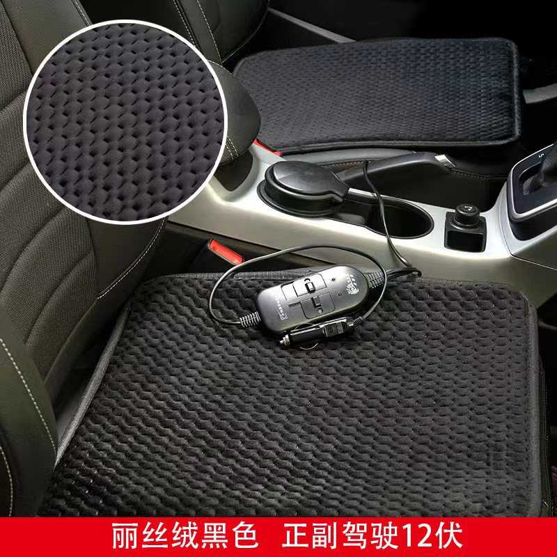 Черная бархатная подушка сиденья с подогревом для водителя, 12 В