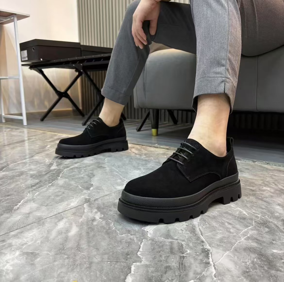 Главная страница > Новые мужские кожаные туфли осень-зима 2025 в британском стиле, черные повседневные рабочие туфли, увеличивающие рост, замшевые туфли для костюма для мужчин