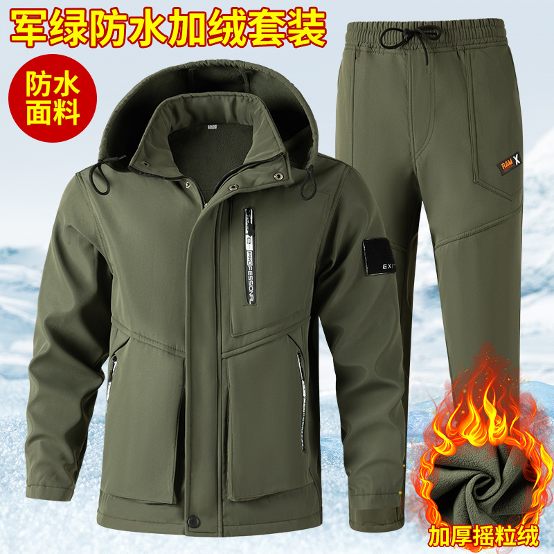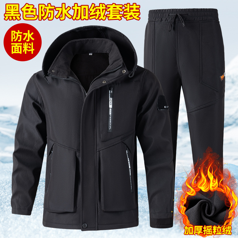 Зимний бархатный утолщенный комплект рабочей одежды мужской морозостойкий, теплый, водонепроницаемый и износостойкий