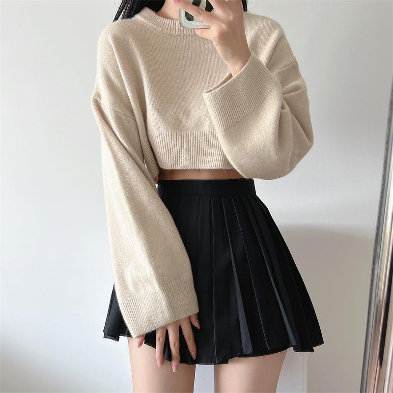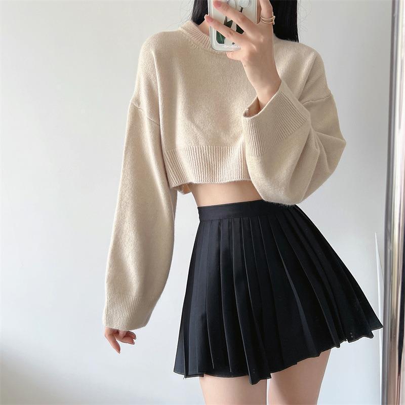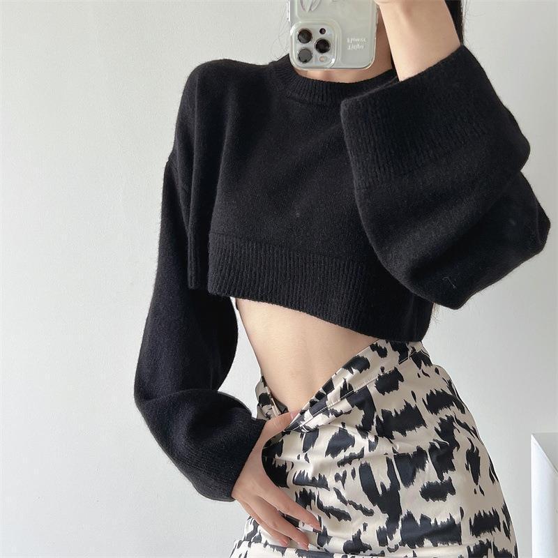 Главная страница > Корейский осенне-зимний новый дизайн, нишевый короткий трикотаж с высокой талией, женский однотонный универсальный трикотаж, топ с длинными рукавами