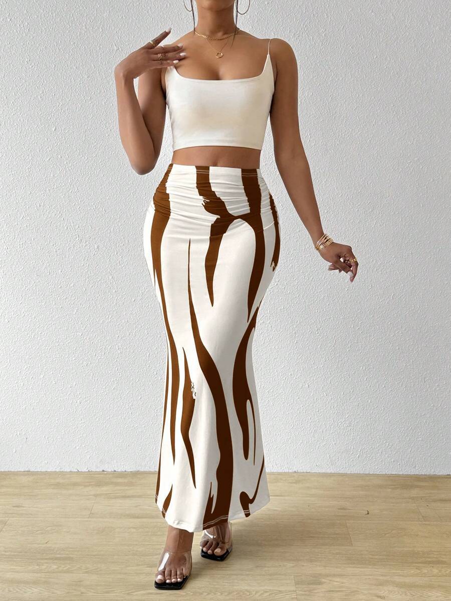 Трансграничная европейская и американская мода 2025 года. Хит продаж на Amazon: женская облегающая юбка-рыбка с высокой талией и принтом.