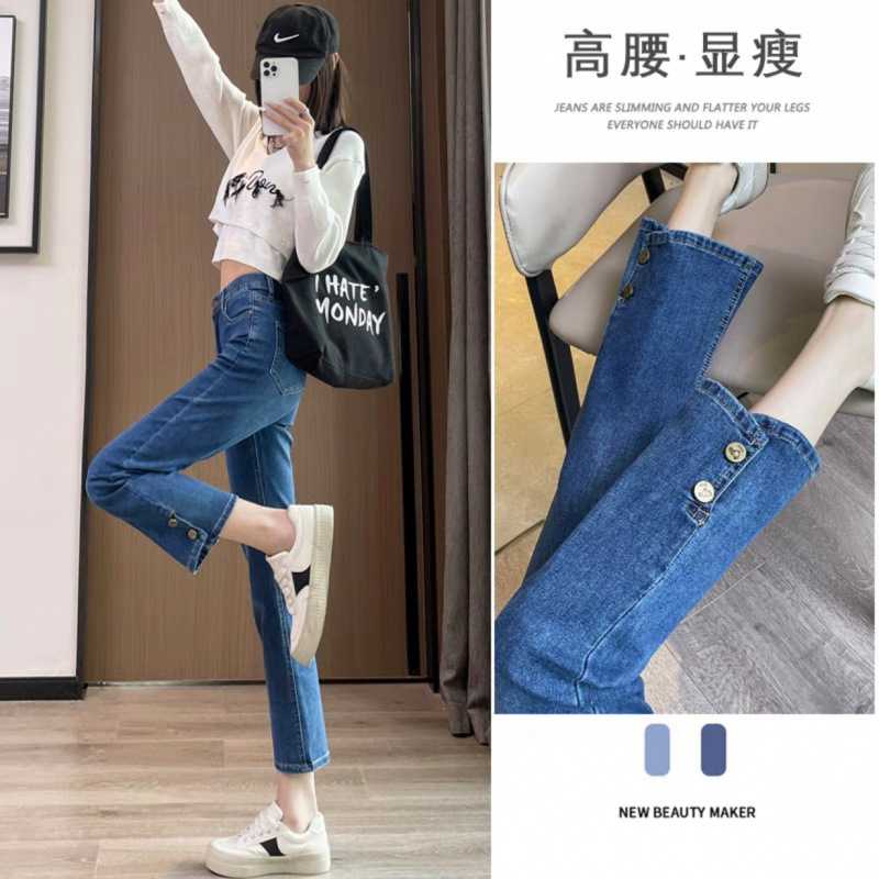 Главная страница > 2024, весенне-летние прямые джинсы, женские осенне-зимние новые утягивающие брюки с высокой талией, маленькие женские брюки с девятью точками