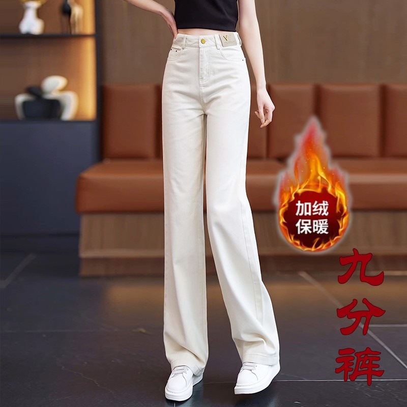 Главная страница > Белоснежные мягкие джинсовые брюки прямого кроя для женщин, весна, осень, лето и зима, новый стиль, повседневные узкие широкие брюки этого года, универсальные.