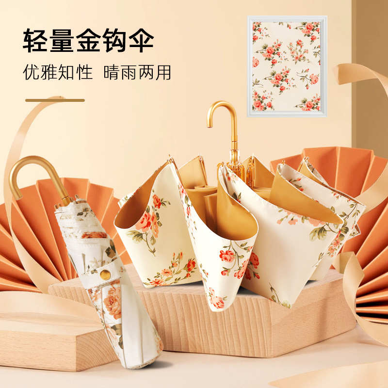 Главная страница > Три складные цветные резиновые зонтики солнцезащитный крем ультрафиолетовый ретро солнечный зонт складной солнечный зонт женский легкий золотой крючок зонт