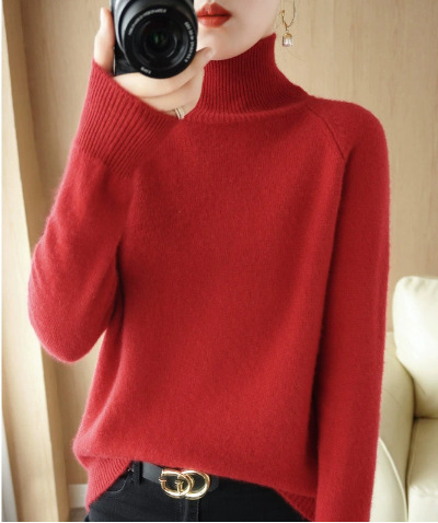 Главная страница > Осенне-Зимний пуловер в новом стиле с вертикальным воротником, женский свободный утолщенный Однотонный свитер в Корейском стиле с высоким воротником, вязаная Базовая рубашка, Женский вязаный свитер