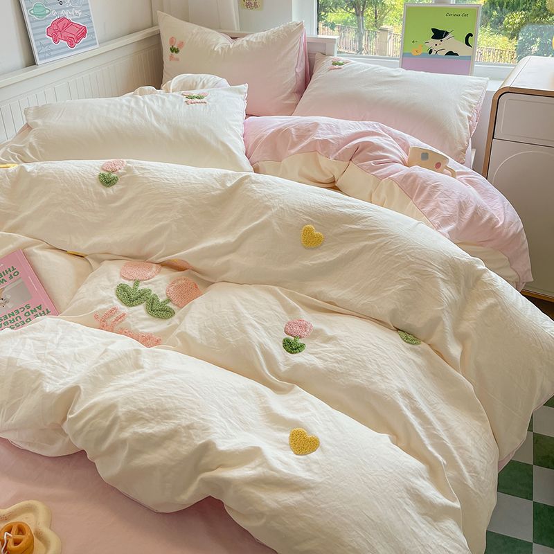 Пододеяльник с рисунком из мультфильма, комплект из четырех предметов, простые хлопковые простыни, комплект из трех предметов для кровати, студенческое общежитие, полотенце, вышитый пододеяльник, постельные принадлежности