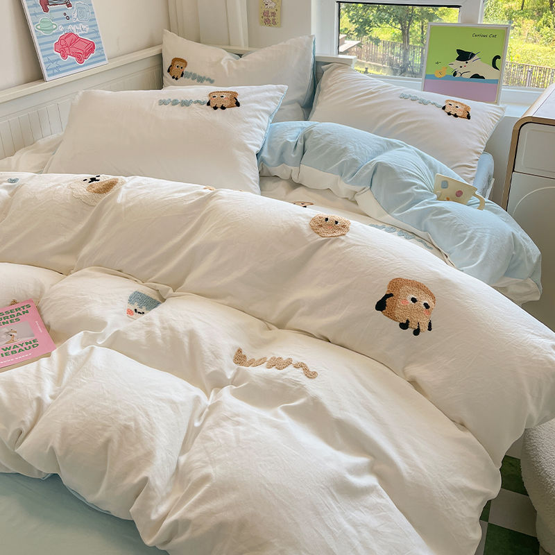 Главная страница > Пододеяльник с рисунком из мультфильма, комплект из четырех предметов, простые хлопковые простыни, комплект из трех предметов для кровати, студенческое общежитие, полотенце, вышитый пододеяльник, постельные принадлежности