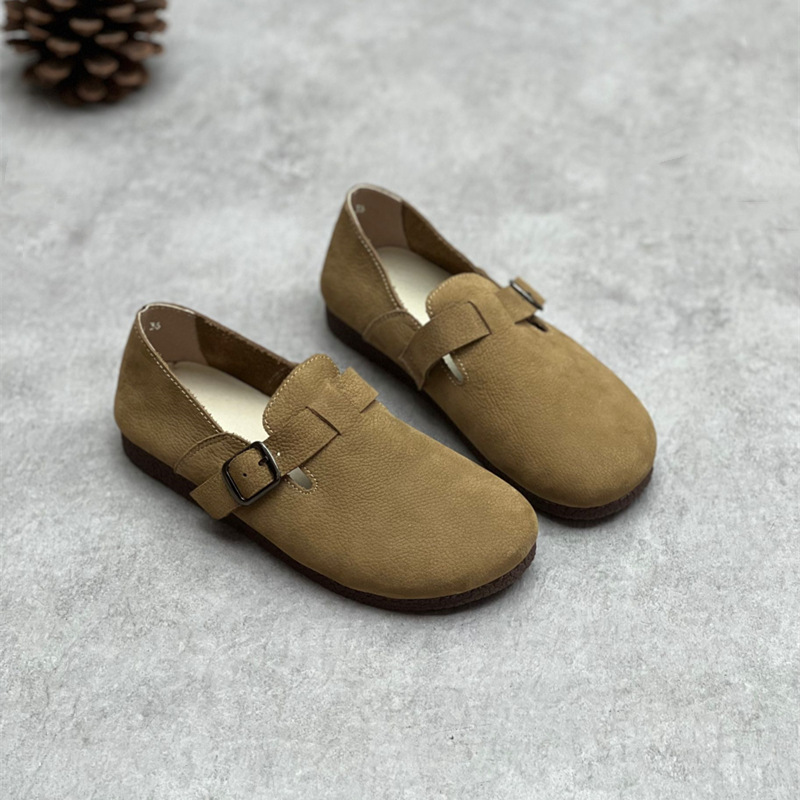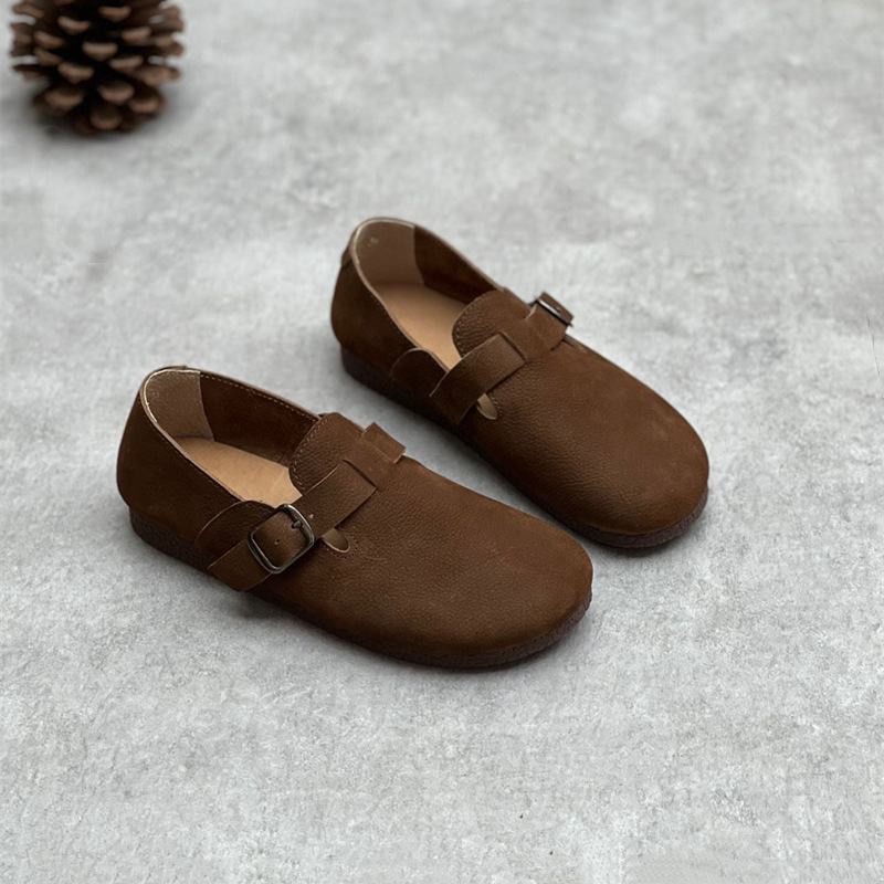 Главная страница > Женские туфли Birkenstock из натуральной кожи в стиле 2025 года, в стиле литературного лесного дизайна, ретро-модель с круглым носком, мягкие кожаные слипоны, универсальная повседневная обувь.