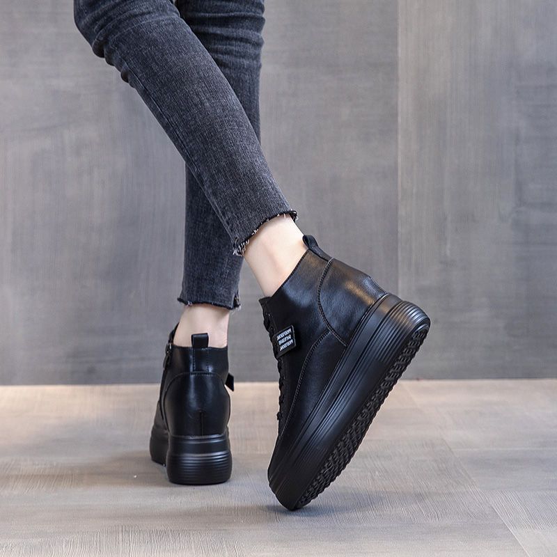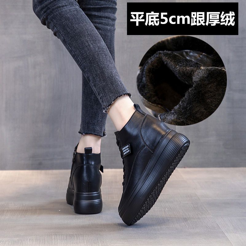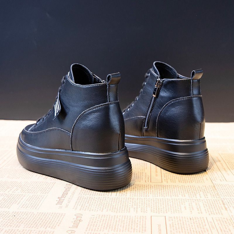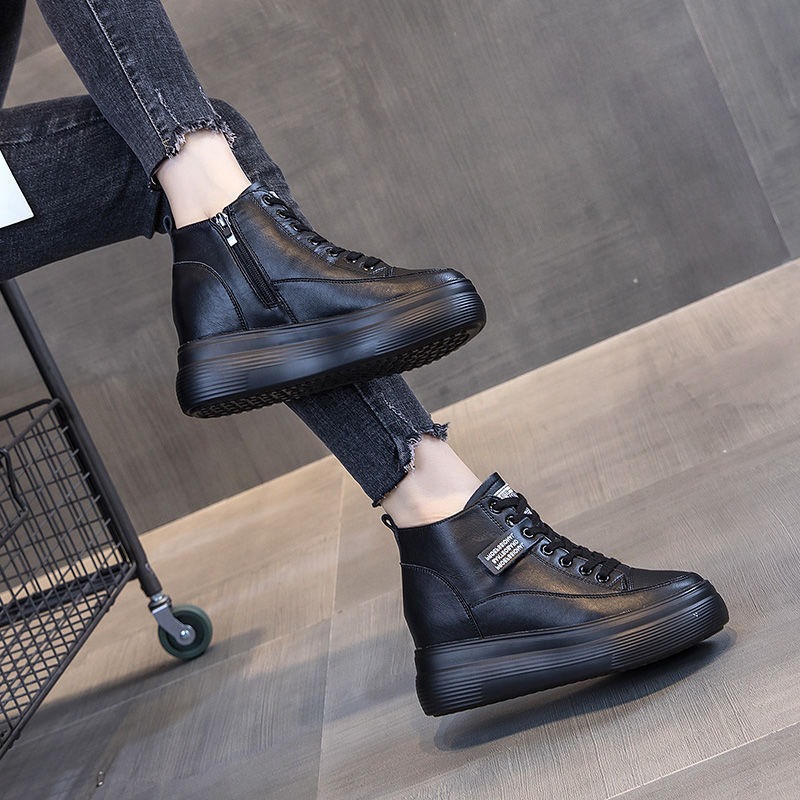 Главная страница > Черные кожаные высокие ботинки женские внутренние увеличенные 8 толстых днища плюс бархат 2025 новые осенние и зимние повседневные кроссовки