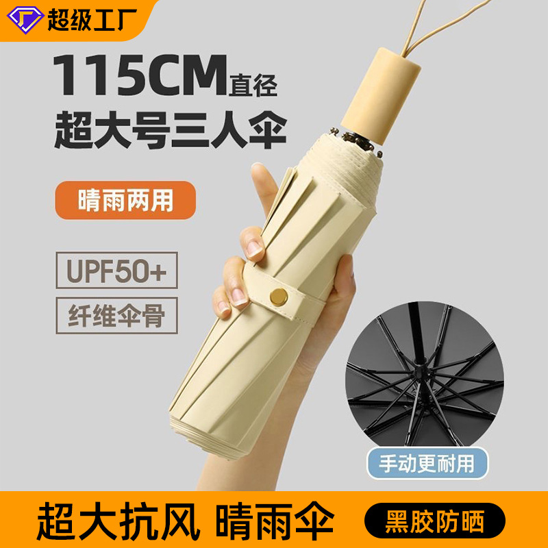 Ручной зонт, прочный и долговечный, складной зонт-шторка для женщин, премиум-качество, двойного назначения для защиты от солнца и дождя, утолщенный и увеличенный.