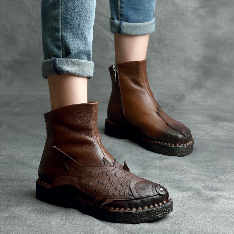 Главная страница > Новые женские ботинки на плоской подошве из натуральной кожи с этническим ретро-дизайном и узором «рыбья чешуя» на осень-зиму 2024 года, с мягкой подошвой