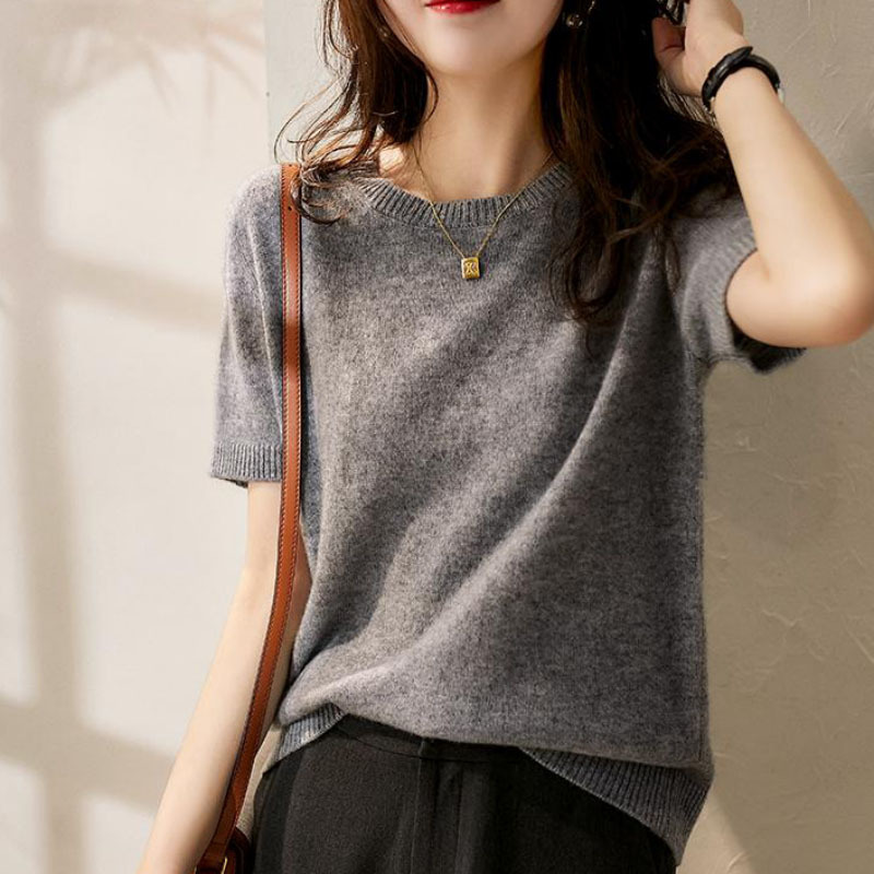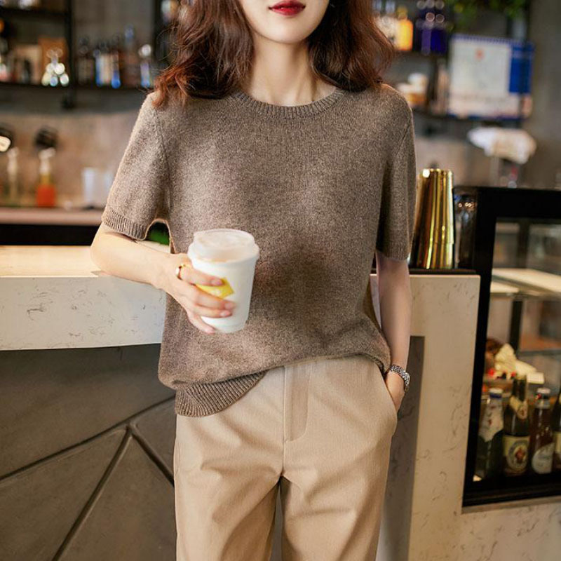 Главная страница > [Количество в пробеге] Однотонная мягкая восковая трикотажная футболка с короткими рукавами Joker, новый женский базовый топ с круглым вырезом
