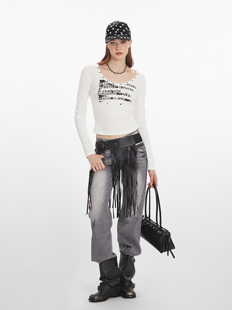 Главная страница > HeyHenry американская сексуальная женская футболка с длинными рукавами и принтом, новинка 2025 года, осенний короткий топ с U-образным вырезом и внутренней нижней частью