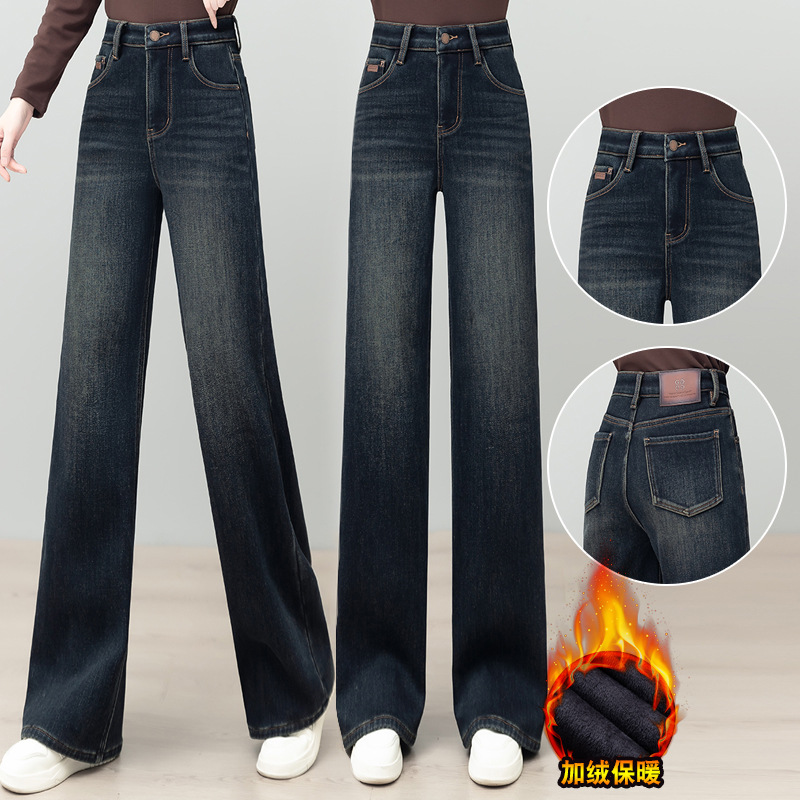 Главная страница > Гуанчжоу Xintang элитные женские зимние бархатные джинсы 2024 новые широкие брюки с тонкими прямыми брюками