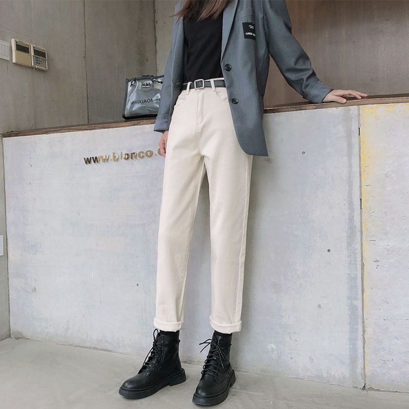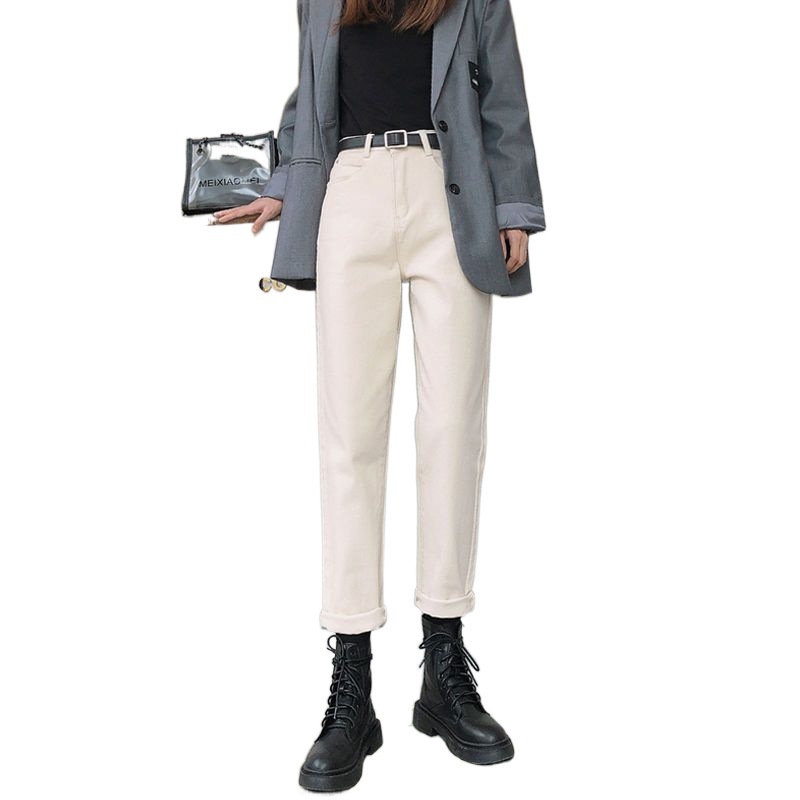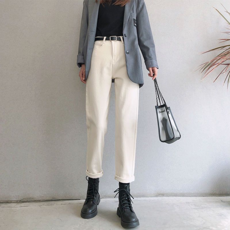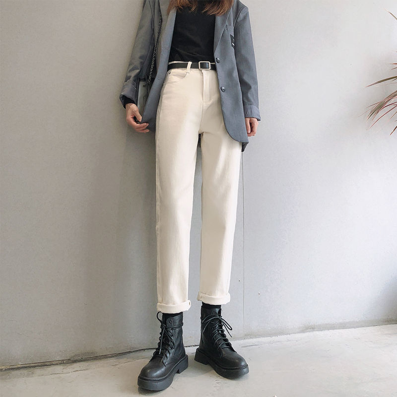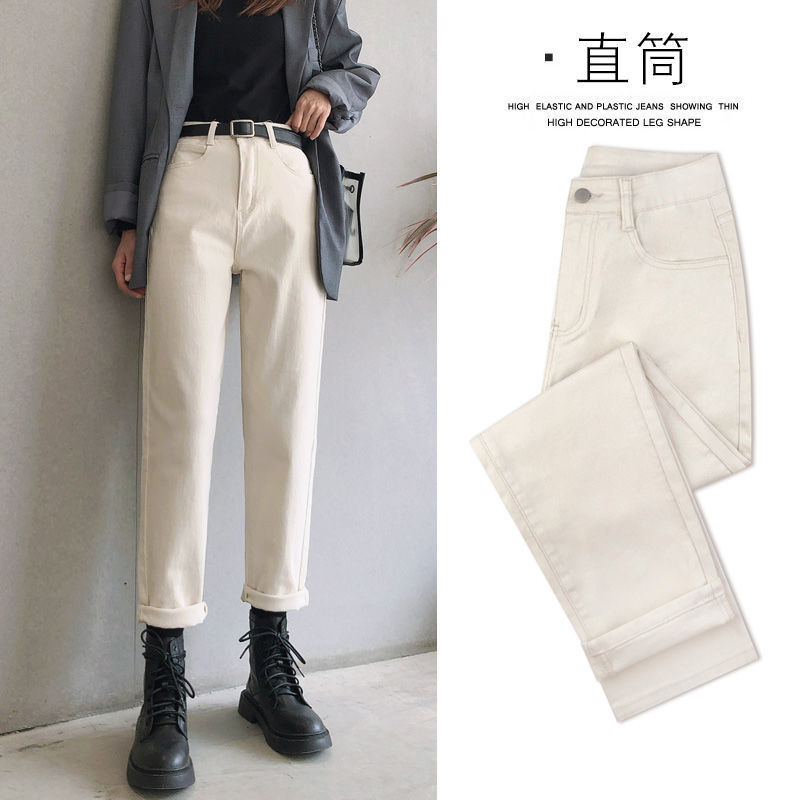 Главная страница > Кремово-белые прямые джинсы женские Осень 2023 новые абрикосовые свободные осенние брюки для папы с высокой талией для похудения