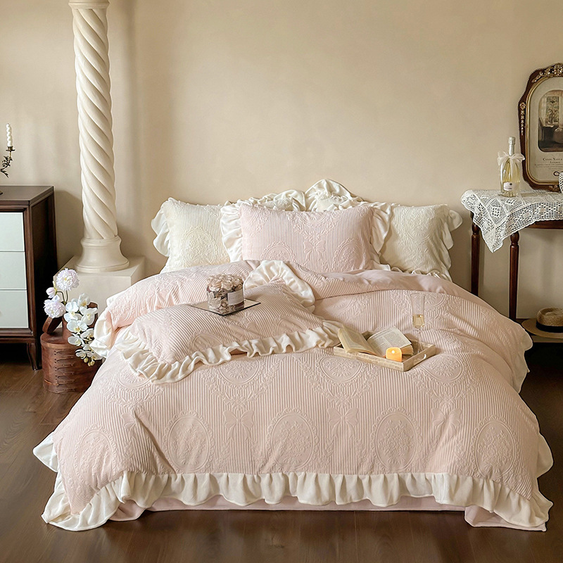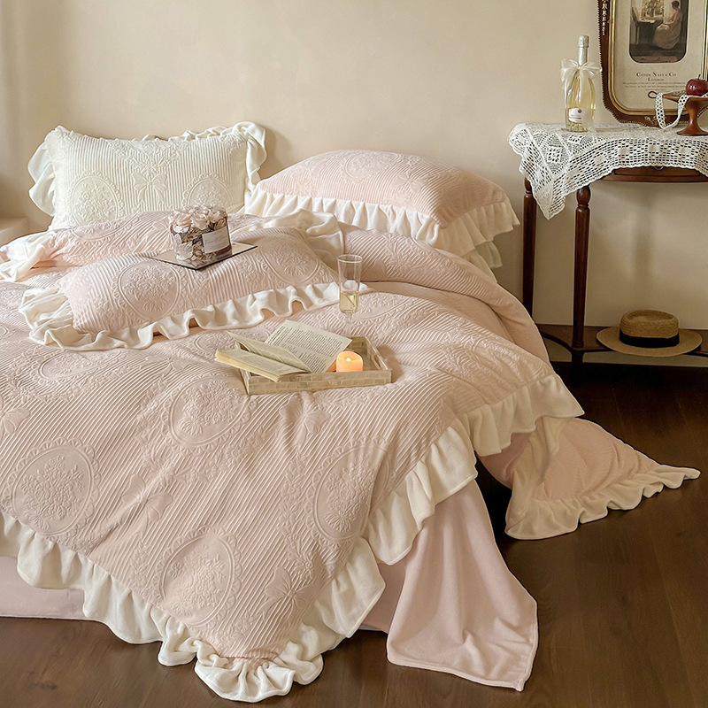 Крем Принцесс Ветер ~ Сгущенный молочный бархат набор из четырех частей зимой теплый коралловый бархат резной простыни одеяло 4
