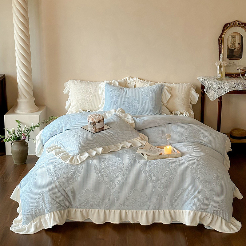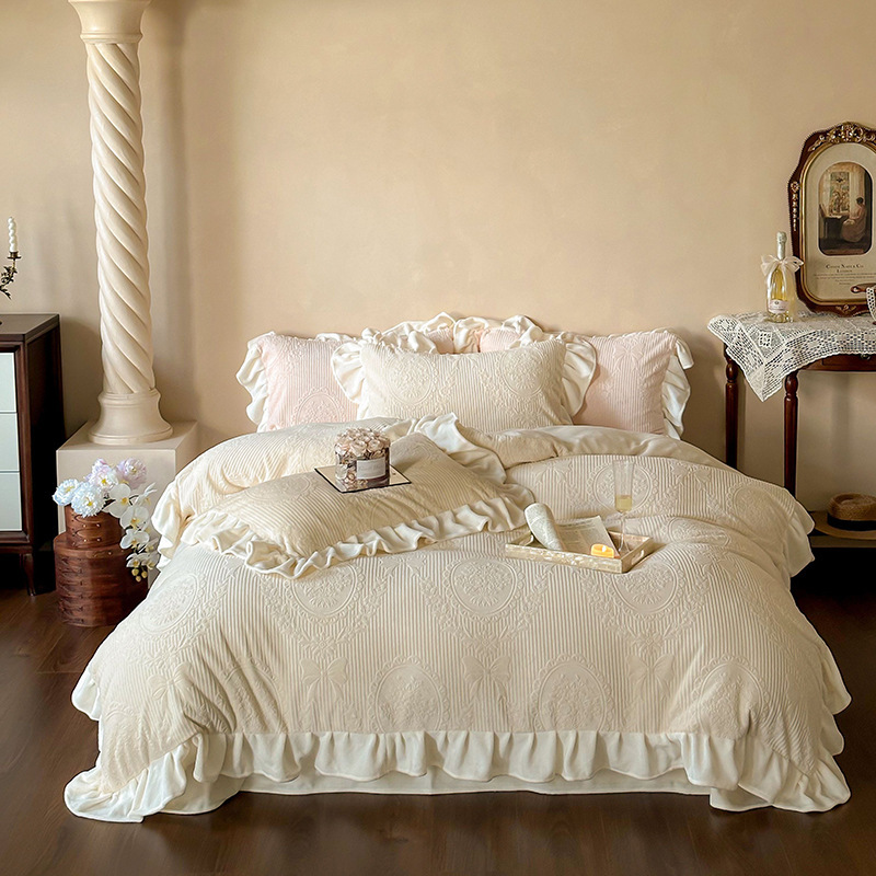 Главная страница > Крем Принцесс Ветер ~ Сгущенный молочный бархат набор из четырех частей зимой теплый коралловый бархат резной простыни одеяло 4