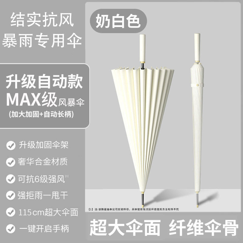 Автоматический зонт с 16 костями [утолщенная водонепроницаемая ткань + каркас зонта из волокна с сильной ветроустойчивостью⭐Молочно-белый]