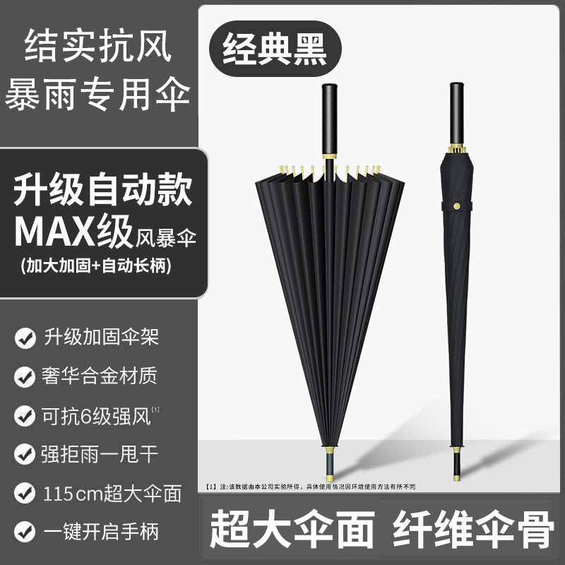 Автоматический зонт с 16 костями [утолщенная водонепроницаемая ткань + каркас зонта из волокна с сильной ветроустойчивостью⭐Классический черный]