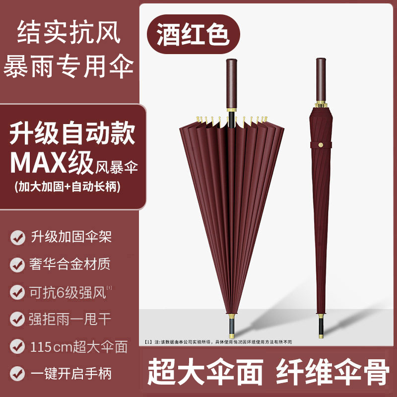 Автоматический зонт с 16 костями [утолщенная водонепроницаемая ткань + каркас зонта из волокна с сильной ветроустойчивостью⭐винно-красный]