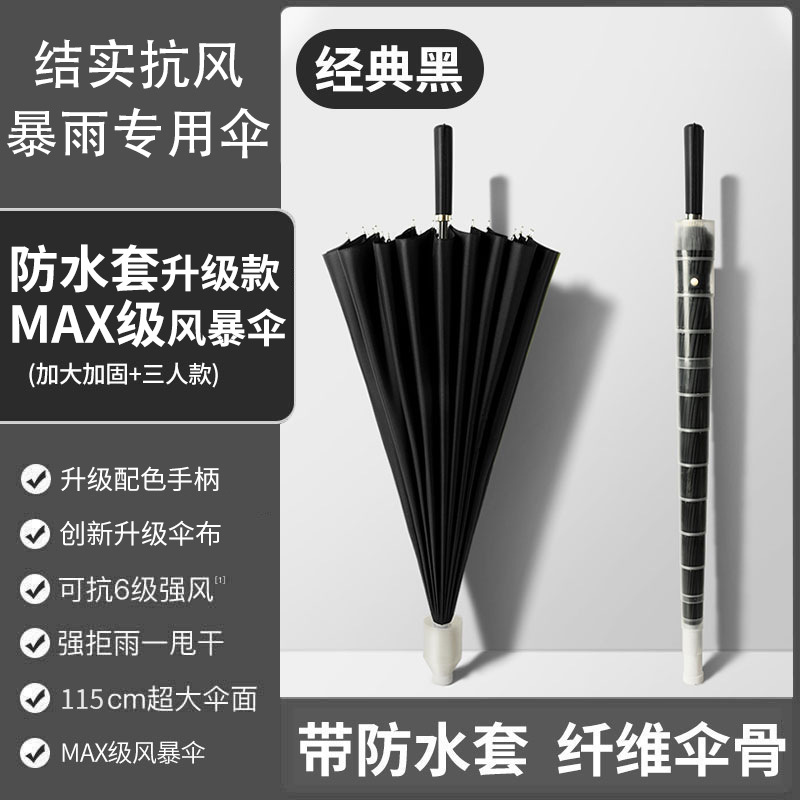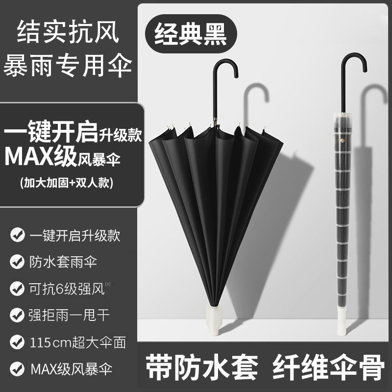 Увеличенная модель на 16 лет с водонепроницаемым чехлом [утолщенная водонепроницаемая ткань + каркас зонта из волокна с сильной ветроустойчивостью⭐Классический черный]