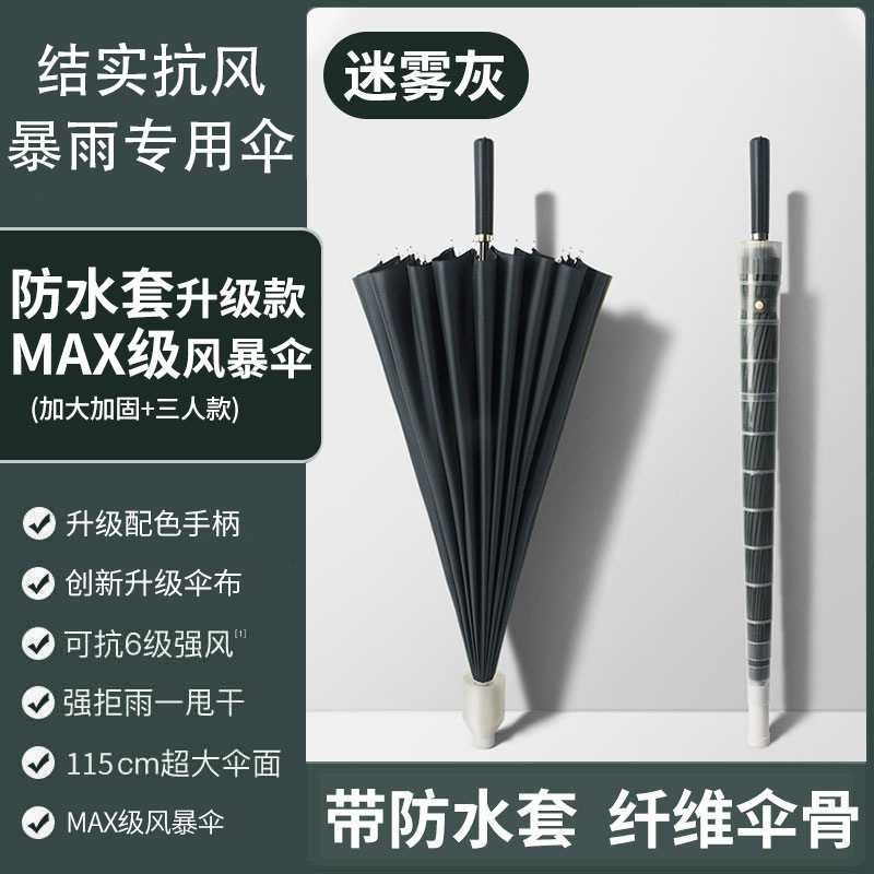Модель с увеличенной 24 кости и водонепроницаемым чехлом [утолщенная водонепроницаемая ткань + волокнистая рама зонта с сильной ветроустойчивостью⭐Туманный серый]