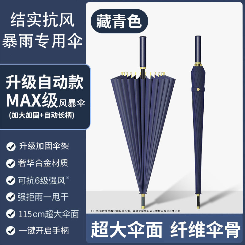 Автоматический зонт с 16 костями [утолщенная водонепроницаемая ткань + каркас зонта из волокна с сильной ветроустойчивостью⭐Темно-синий]